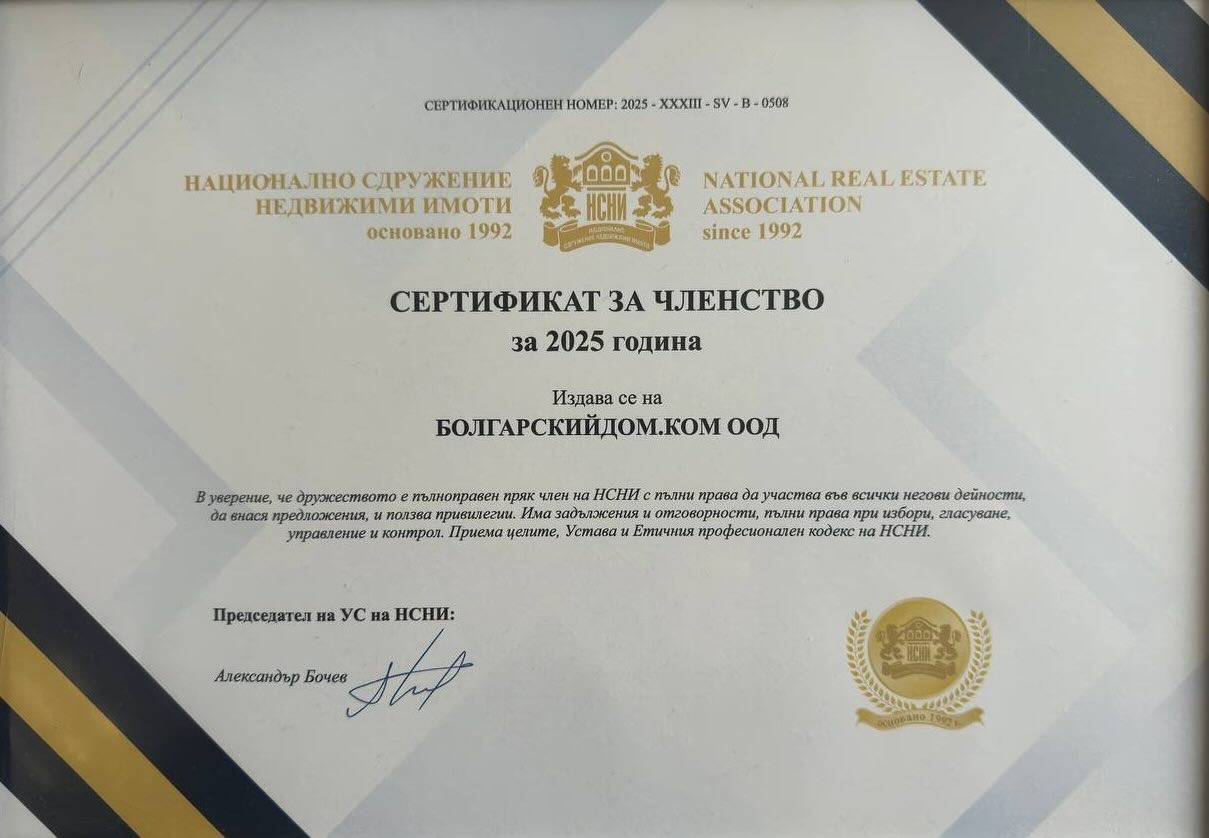 Die NREA (Nationale Immobilienvereinigung) ist die älteste und führende bulgarische Berufsorganisation, die 1992 gegründet wurde, um ethische Standards festzulegen, Kundeninteressen zu schützen und den Immobilienmarkt zu regulieren. BolgarskiyDom.com ist NREA Mitglied und bestätigt damit seine Einhaltung der hohen professionellen und ethischen Standards des Verbandes.