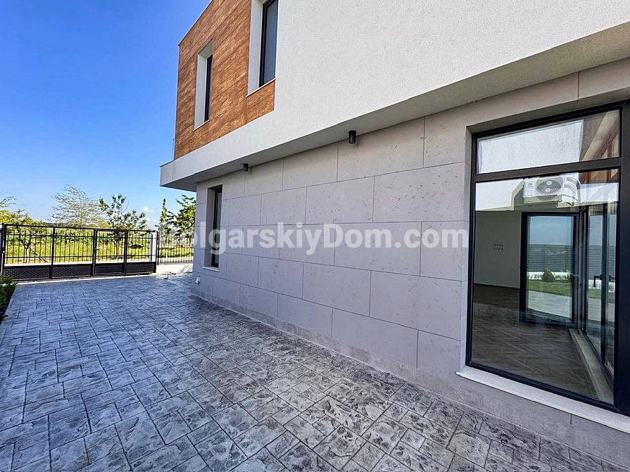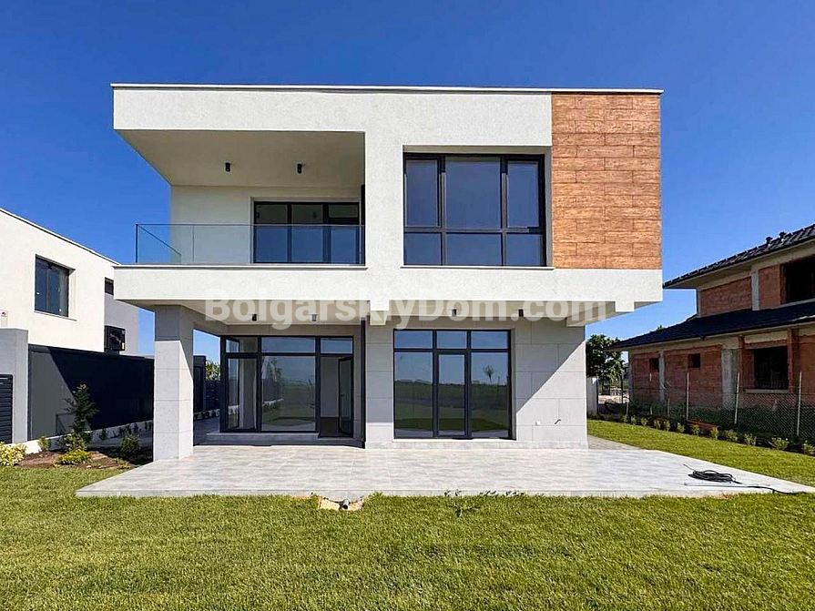 Autonome Immobilien von einem Entwickler in Pomorie! Neue Einrichtungen für Anhänger komfortablen Wohnens an der bulgarischen Schwarzmeerküste – wir eröffnen den Verkauf von sieben Einfamilienhäusern in der Gegend von Lakhana, acht Autominuten von Burgas entfernt. Jedes der Häuser ist auf zwei Etagen gebaut, die bebaute Fläche beträgt 196 qm. Separate Höfe mit einem Meter von 350 bis 650 qm. Wichtig: Haushaltsstrom und Wasser, es gibt ein Gesetz 16. Die Aufteilung ist wie folgt: ein Badezimmer, eine Speisekammer, eine Veranda, eine Küche-Esszimmer und ein Wohnzimmer im Erdgeschoss und drei Schlafzimmer, ein Ankleidezimmer, zwei Badezimmer und zwei Terrassen im zweiten Stock.