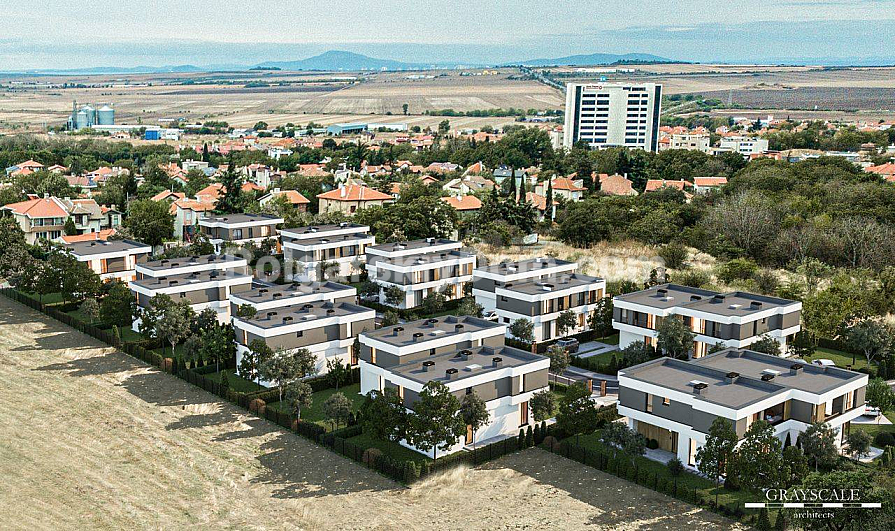 Heißes neues Angebot von der Immobilienagentur Bolgarskiy Dom direkt vom Bauträger! Das perfekte eigene Haus mit Grundstück im grünen Vorort von Burgas – ganz ohne Wartungsgebühr! Eine einzigartige Gelegenheit, ein eigenes Haus im grünen Stadtteil Vetren von Burgas zu erwerben. Der Hauptvorteil – jede Immobilie wird mit eigenem Grundstück (400 qm Hof) verkauft! Die Anlage besteht aus nur 18 Häusern und befindet sich in unmittelbarer Nähe zu den Mineralbädern und einem Kiefernwald – Sie genießen also Ruhe inmitten der Natur in Kombination mit städtischem Komfort.