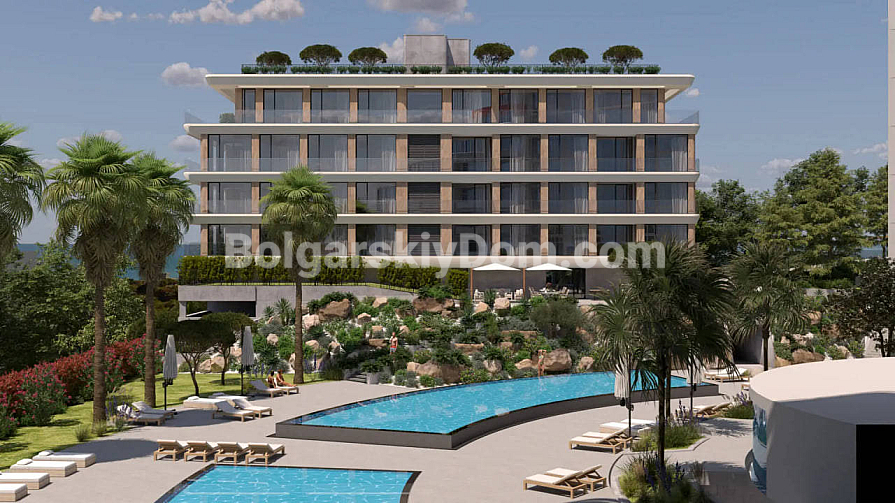 Der Azur Aqua-Komplex befindet sich in der grünsten und ruhigsten Gegend von St. Konstantin und Elena, nur 50 Meter von den besten Stränden und 10 Minuten Fahrt vom Zentrum Varna entfernt. Das gesamte Konzept des Komplexes ist auf einen gesunden Lebensstil ausgerichtet: Es gibt ein eigenes Spa- und Medizinzentrum mit Hallenbad, Sauna und Fitnessbereich, während das Außenbecken mit einem umweltfreundlichen Salz-Elektrolysesystem gereinigt wird. Das Gelände ist ein echter Park (7.000 m²) mit reicher Begrünung und Soundsystem, Sicherheit und Komfort werden durch eine fünfstöckige gesicherte Tiefgarage mit Smart-Systemen und Ladestationen für Elektrofahrzeuge gewährleistet. Dies ist eine A-Klasse-Wohnung vom ausgezeichneten Bauträger „Gebäude des Jahres“.