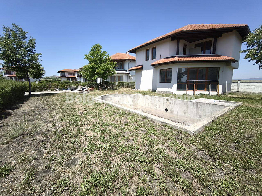 Bolgarskiy Dom präsentiert ein exklusives Angebot: ein freistehendes zweistöckiges Haus mit einer Fläche von 146 qm im Elitekomplex Floral Meadows in Aheloy. Das Haus verfügt über ein eigenes Grundstück von 400 qm, einen privaten Pool von 40 qm und einen reservierten Parkplatz. Die Raumaufteilung umfasst einen Eingangsbereich, ein geräumiges Wohn- und Esszimmer mit Küche, zwei Schlafzimmer und zwei Badezimmer. Ein zusätzliches Plus ist die Terrasse mit herrlichem Blick auf die Stadt Aheloy. Das Objekt ist fertiggestellt und verfügt über Akt 16, sodass Sie sofort mit den Innenausbauarbeiten beginnen können. Hinweis: Das Haus wird im Rohbauzustand verkauft, was Ihnen die einmalige Möglichkeit gibt, das Interieur ganz nach Ihrem Geschmack und Entwurf zu gestalten.