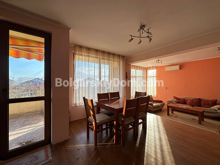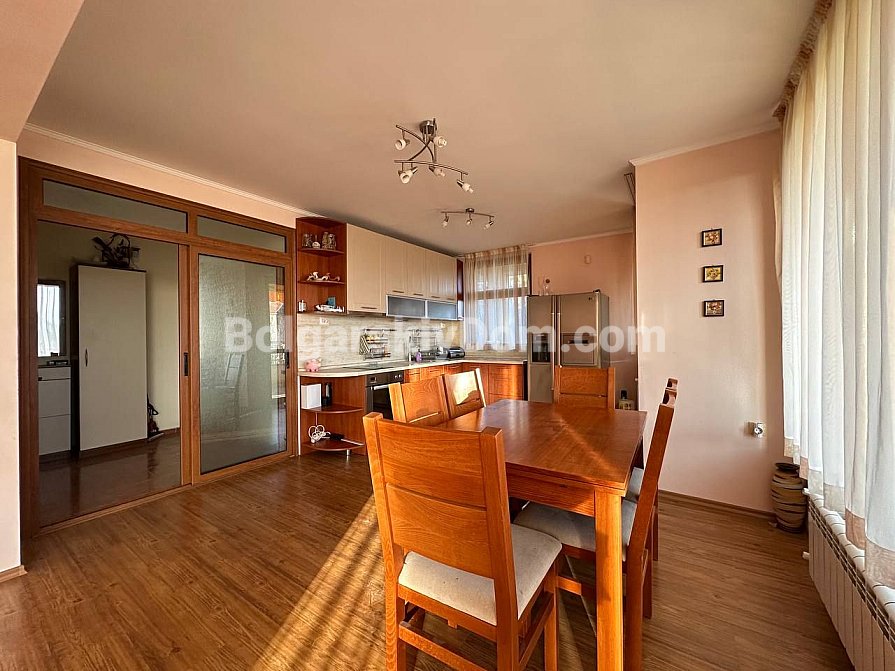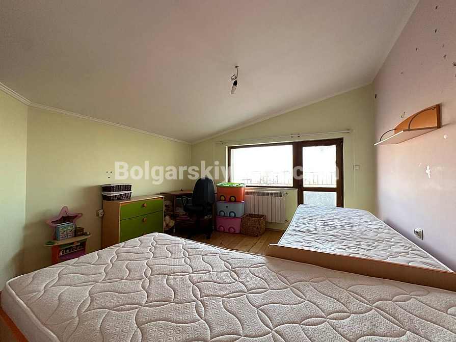 Träumen Sie von einem eigenen Haus mit Bergblick, möchten aber dennoch in Stadtnähe bleiben? Dann ist dieses dreistöckige Haus mit Garage und angelegtem Garten im Stadtteil Banevo in Burgas die ideale Lösung! Das Haus liegt am Fuße malerischer Hügel, ist vollständig möbliert und ausgestattet – ein echtes schlüsselfertiges, autonomes Zuhause. Die Fläche ist beeindruckend: drei Wohnetagen sowie ein großes Untergeschoss (59,10 qm) mit Waschküche, Heizraum und einem geräumigen Hobby- oder Fitnessraum. Im Erdgeschoss (66,06 qm) befinden sich Wohnzimmer, Küche und Essbereich. Das zweite Geschoss (106,12 qm) verfügt über einen komplexeren Grundriss mit zwei Schlafzimmern, zwei Badezimmern und einem separaten Wohnzimmer mit Küchenzeile. Im dritten Geschoss (67,53 qm) befinden sich zwei weitere Schlafzimmer, eines davon mit großer Terrasse und Panoramablick über ganz Burgas! Dazu kommt eine Garage mit automatischem Tor (19,27 qm) und ein gepflegter, eingezäunter Hof.