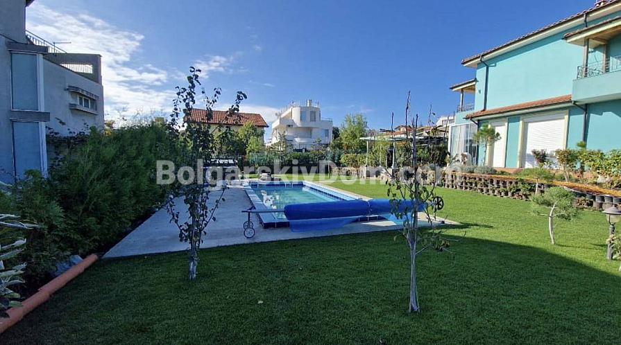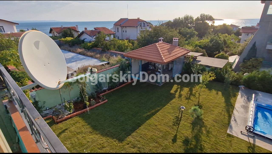 Wir präsentieren ein einzigartiges Objekt zum Verkauf! Ein freistehendes Haus in zweiter Meereslinie in Chernomorets – ein Zuhause mit eigenem beheiztem Pool und Blick auf zwei Buchten. Das Haus mit einer Fläche von 228 m² wurde im Jahr 2022 gebaut, verfügt über Akt 16 und ist an den Haushaltsstromtarif angeschlossen. Auf dem 850 m² großen Grundstück befindet sich ein Garten mit automatischer Bewässerung sowie eine 30 m² große Sommerküche mit Grillbereich. Die technischen Systeme des Hauses umfassen eine neue Toshiba-Wärmepumpe, Solarpaneele für Warmwasser sowie einen eigenen Brunnen mit einem Fünf-Tonnen-Wassertank. Die Innenausstattung ist aus Naturholz gefertigt, in den Zimmern wurde massives Parkett verlegt. Das Erdgeschoss umfasst ein Wohnzimmer, ein separates Esszimmer, eine Küche, eine Waschküche und einen Abstellraum. Im Obergeschoss befinden sich drei Schlafzimmer. Ein 11-kW-Kamin in Kombination mit Fußbodenheizung sorgt im Winter für eine gemütliche Atmosphäre. Der 10 Meter lange Pool ist mit einem Salzelektrolyse-System zur natürlichen Wasserreinigung ausgestattet.