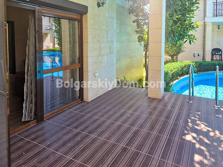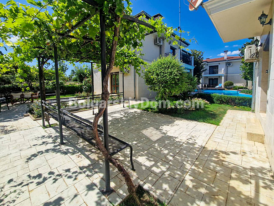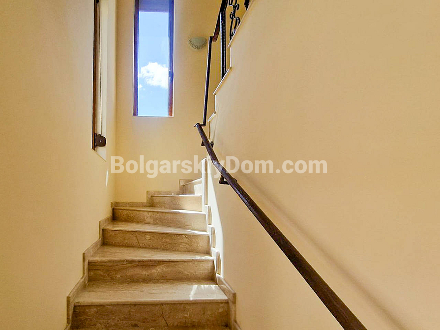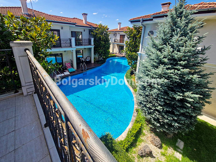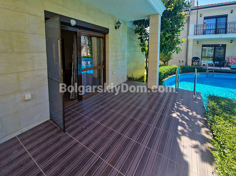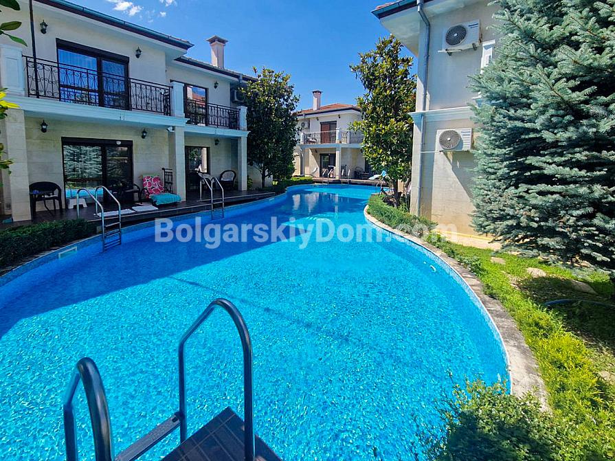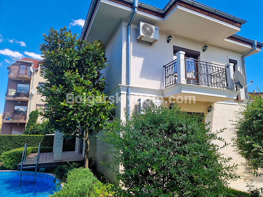 Premium-Angebot für Bolgarskiy Dom-Kunden! Wir präsentieren ein gemütliches zweistöckiges Luxus-Reihenhaus in Ravda, das ein komfortables Zuhause für Ihre Familie oder eine Investition mit hoher Mietrendite in der Saison darstellt! Die Gesamtfläche von 116 qm umfasst: Im Erdgeschoss ein geräumiges Wohnzimmer mit Kamin, eine voll ausgestattete Küche, eine Speisekammer, ein Badezimmer und eine Terrasse mit Zugang zum Pool. Das Obergeschoss bietet zwei helle Schlafzimmer, ein Badezimmer und drei Terrassen, von denen Sie den Blick auf die Umgebung genießen können. Die Lage nur 300 Meter vom Meer entfernt und ein spezielles Preisangebot machen diese Immobilie zu einem heißen Deal – rufen Sie uns an, um eine Besichtigung zu vereinbaren.