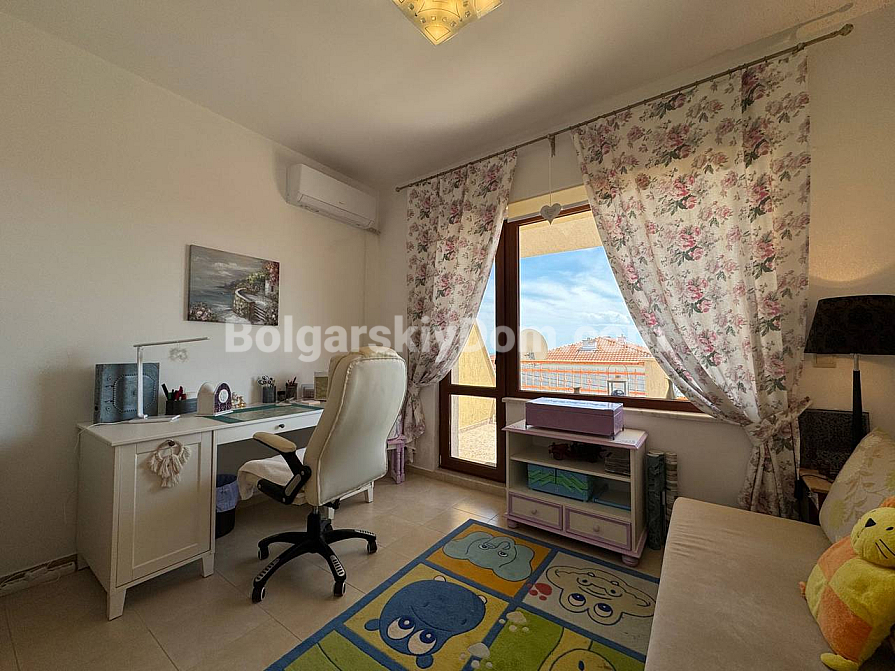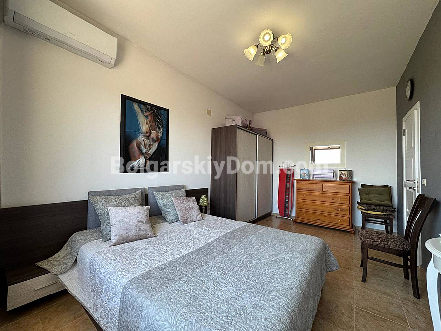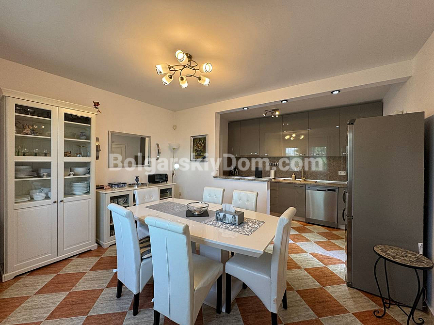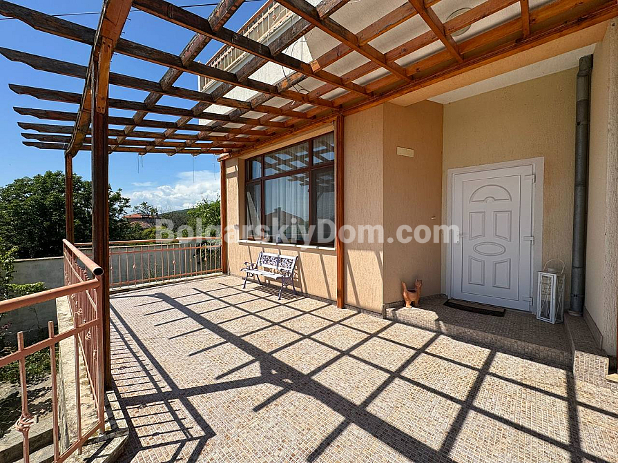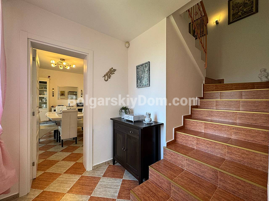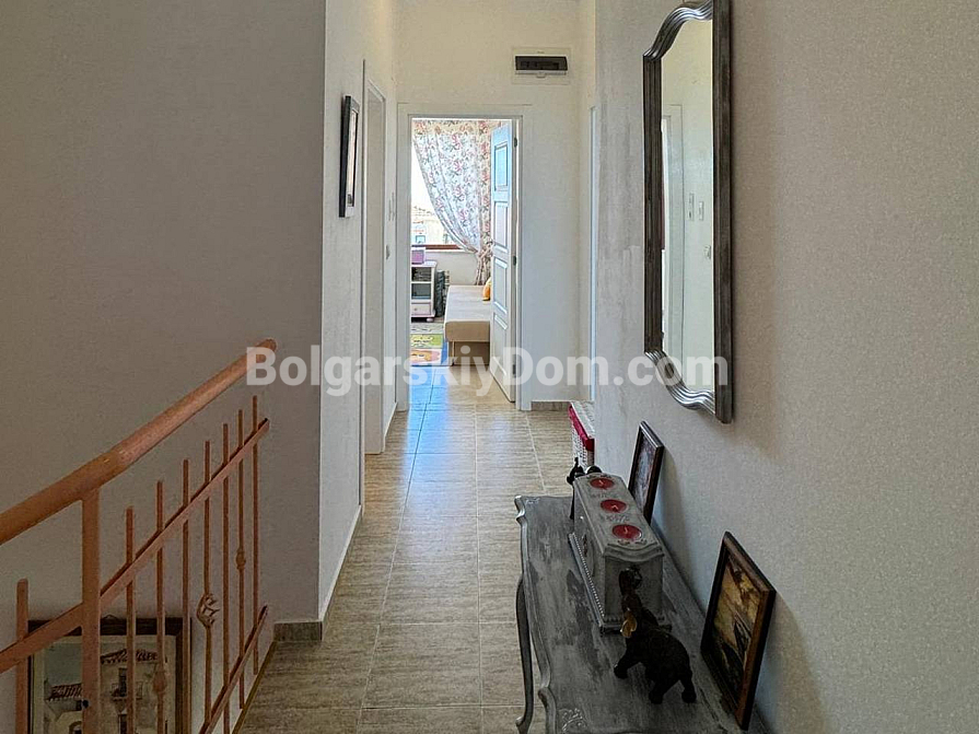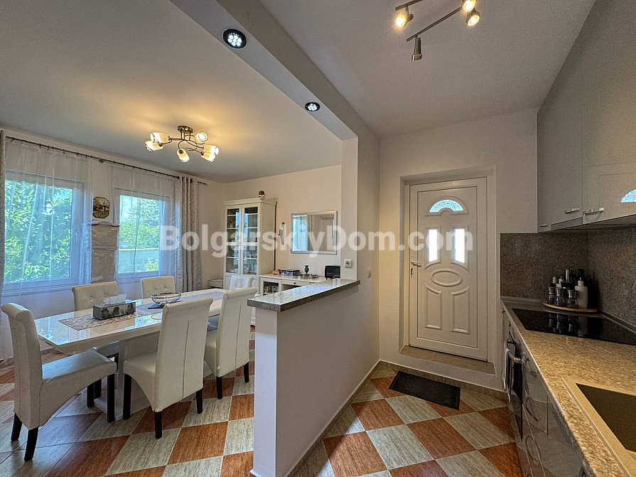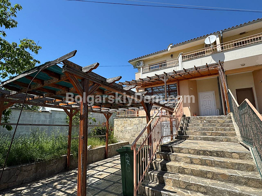 Bolgarskiy Dom präsentiert eine ausgezeichnete Option für autonome Immobilien! Wir stellen Ihnen ein stilvolles zweistöckiges Reihenhaus im Herzen von Kosharitsa vor, das jetzt zum Verkauf steht! Das Haus hat eine Gesamtfläche von 163 qm mit einem Grundstück von 299 qm, zwei Stockwerke mit insgesamt fünf Zimmern, darunter drei gemütliche Schlafzimmer. Im Erdgeschoss: Eingangshalle, Badezimmer, geräumiges Wohnzimmer mit Kamin, Essbereich mit Küche, kleiner Abstellraum unter der Treppe und Zugang zum Hinterhof. Im Obergeschoss befinden sich drei Schlafzimmer, darunter ein Master-Schlafzimmer mit eigenem Bad mit Badewanne und Fußbodenheizung, ein separates Badezimmer mit Dusche sowie eine große Terrasse mit Blick auf Felder und Umgebung. Unter dem Erdgeschoss befindet sich ein geräumiger Lagerraum. Das Haus ist teilweise möbliert, mit Geräten und Klimaanlagen ausgestattet und an die zentrale Wasserversorgung, Kanalisation und Elektrizität angeschlossen. Einige Möbel und Textilien verbleiben beim Verkauf. Das Grundstück bietet Parkplätze für zwei Autos.