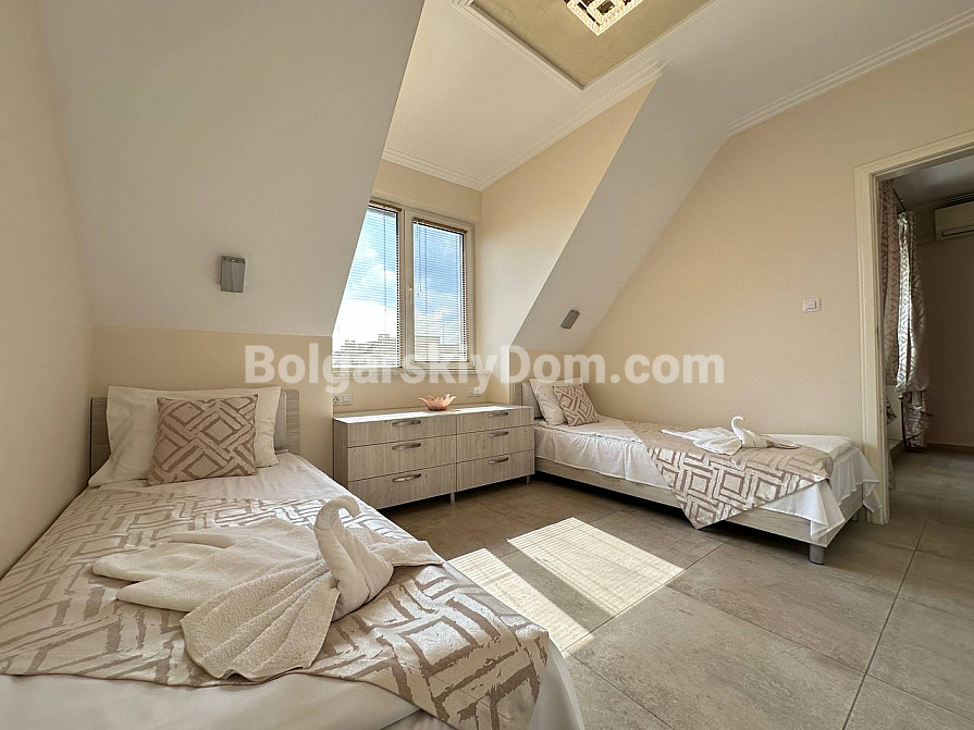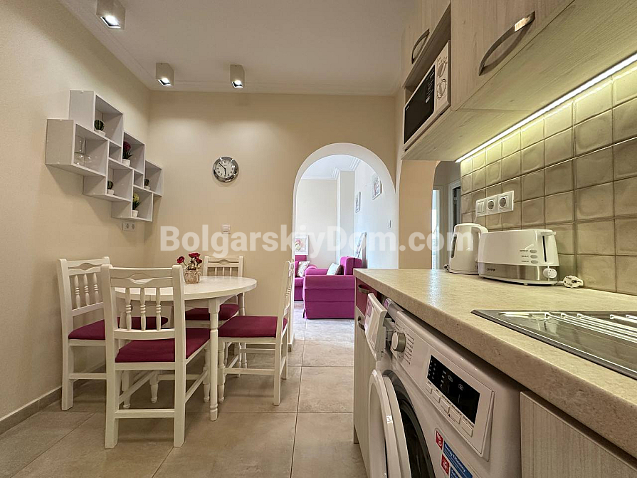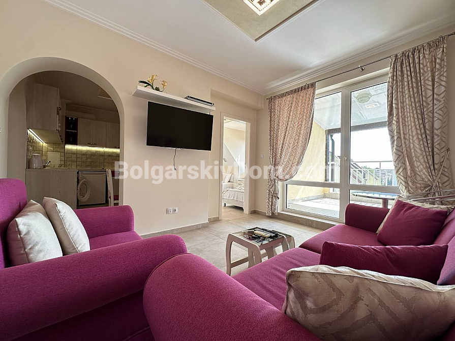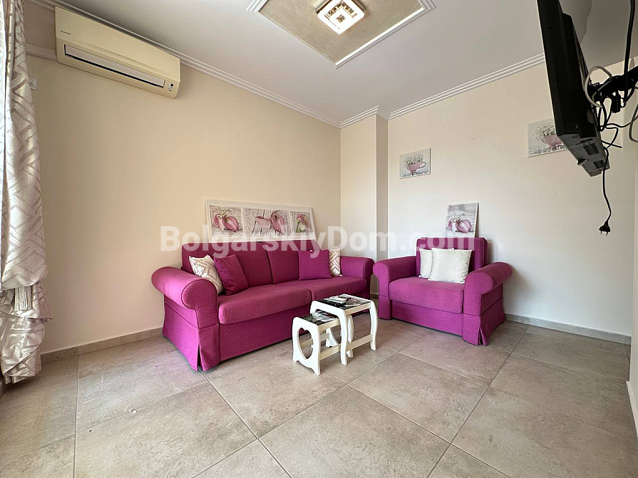 Immobilien in der Wohnanlage Sea Dreams, vierhundert Meter vom Meer entfernt – volle Bereitschaft für die Transaktion! In Sonnenstrand, in der Nähe des Kamelienviertels, befindet sich ein Apartment mit zwei Schlafzimmern und einer Fläche von 81 m². ist zu verkaufen. Die Zimmer, der Flur und das Badezimmer sind komplett mit Möbeln ausgestattet, die Geräte sind installiert und bleiben auch nach dem Verkauf erhalten, die Küche befindet sich in einer separaten Nische und eine große Außenterrasse ist ein großartiger Ort zum Entspannen und Betrachten der Umgebung. Sechste, die letzte Wohnetage.