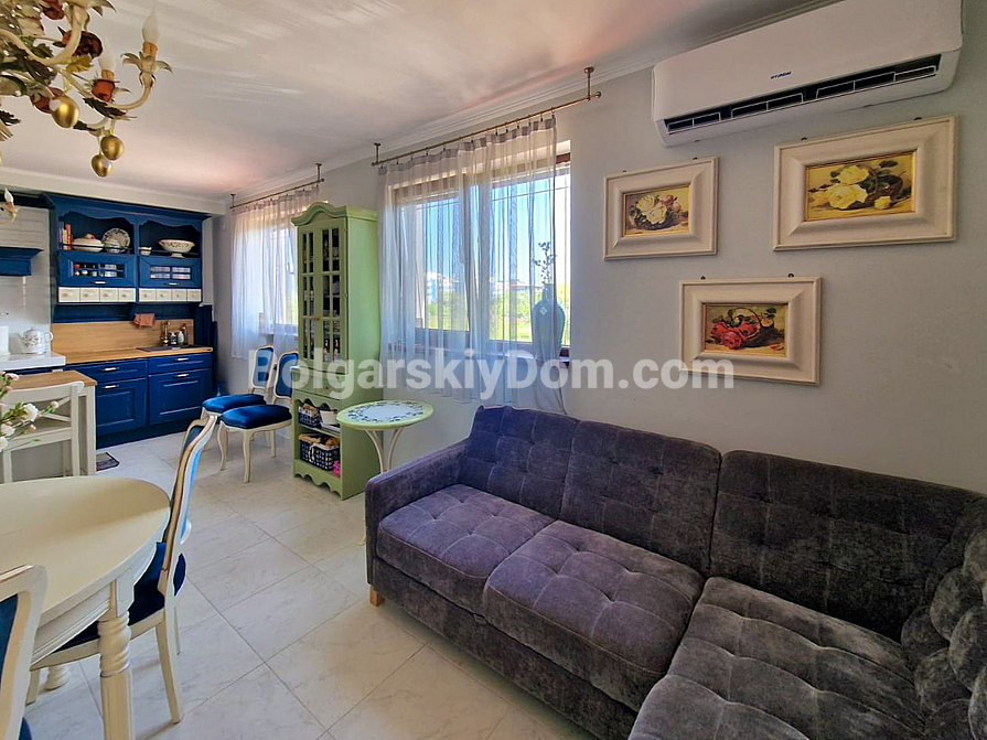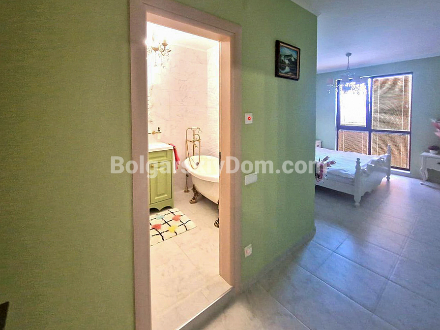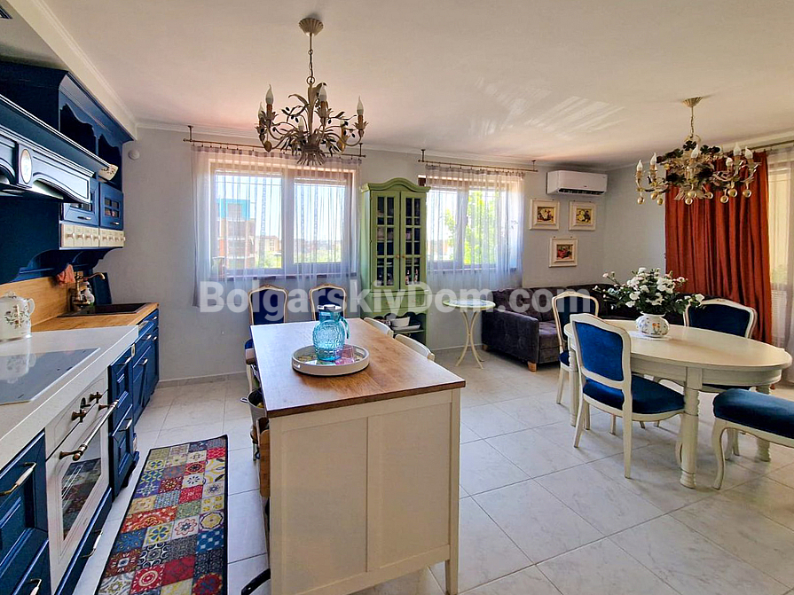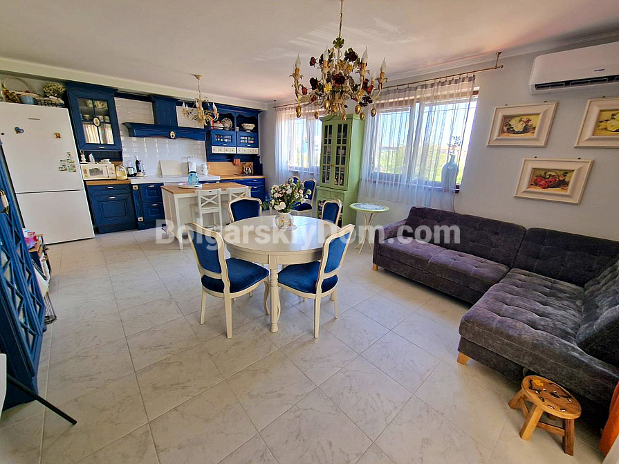 Ein Angebot der Luxusklasse von Bulgarian House für Bewerber, die bereit sind, in eine wirklich würdige Immobilie am Meer zu ziehen! In der Wohnanlage Poseidon, vierhundert Meter von der Küste von Nessebar, ist eine Vier-Zimmer-Wohnung zum Verkauf bereit. Die Wohnung ist geschmackvoll mit italienischen Möbeln eingerichtet und befindet sich im zweiten Stock. Im Jahr 2023 wurden hochwertige Ausbesserungsarbeiten durchgeführt; auf der gesamten Fläche (170 qm) wurde eine Fußbodenheizung installiert.