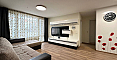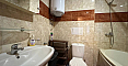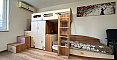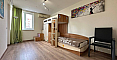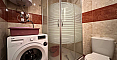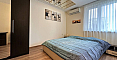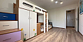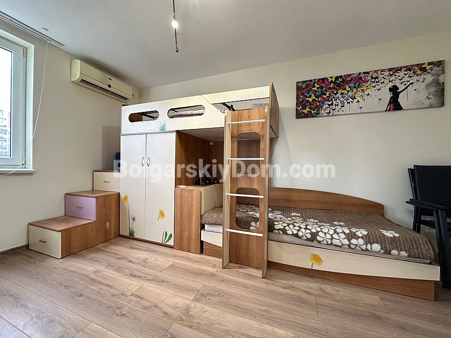 Das Hauptschlafzimmer verfügt über ein großes Bett und einen Arbeitsbereich. Das zweite Schlafzimmer ist als Kinderzimmer eingerichtet. Die Wohnung hat zwei Badezimmer: eines mit Badewanne, das andere mit Duschkabine. Außerdem gibt es eine Waschmaschine.