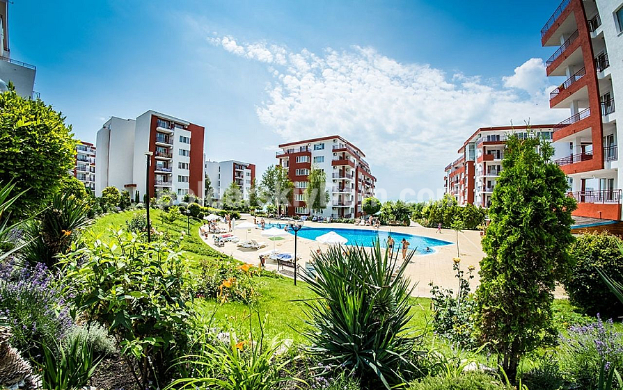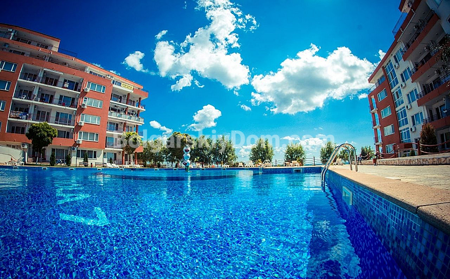 Der Marina View Fort Beach Komplex befindet sich in einer malerischen Umgebung, umgeben von grünen Wäldern und auf einer Anhöhe gelegen, von der aus sich ein atemberaubender Blick auf die Bucht von Sonnenstrand und die Altstadt von Nessebar eröffnet. Er liegt nur 50 Meter vom Meer entfernt und bietet eine einzigartige Kombination aus frischer Meeres- und Bergluft, was ideale Bedingungen für Erholung und Wohnen schafft. Die weitläufige Anlage verfügt über zahlreiche Annehmlichkeiten, darunter Swimmingpools, Restaurants, ein Fitnesscenter, Geschäfte und weitere Infrastruktureinrichtungen, die einen komfortablen Aufenthalt, langfristiges Wohnen und eine hohe Nachfrage bei Mietern gewährleisten.