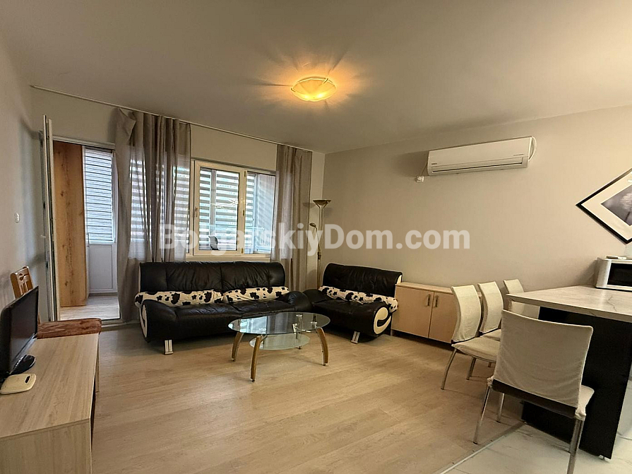 Eine warme und gemütliche Zweizimmerwohnung in Ravda wartet bereits auf ihre neuen Besitzer. Sie befindet sich im Erdgeschoss eines dreistöckigen Gebäudes. Die Wohnung ist in ausgezeichnetem Zustand. Die meisten Möbel wurden nach Maß angefertigt, zum Beispiel ein großer Kleiderschrank, ein Schuhregal und eine Kommode im Flur. Der Wohnbereich ist geräumig, mit einer großen Küche, die vollständig mit modernen, hochwertigen Geräten ausgestattet ist: Herd, Ofen, Geschirrspüler und Waschmaschine, Kühlschrank. Der Wohnbereich ist optisch durch einen Bartisch vom Essbereich getrennt. Das Schlafzimmer ist klassisch eingerichtet mit einem Kleiderschrank und einem Doppelbett. Das Badezimmer verfügt über eine Dusche. Das Highlight dieser Wohnung ist eine verglaste Terrasse, die als Büro ausgestattet ist, mit eigenem Kleiderschrank und Sofa. Es ist so warm, dass man sogar im Winter dort schlafen kann. Sie ist von beiden Räumen aus zugänglich.