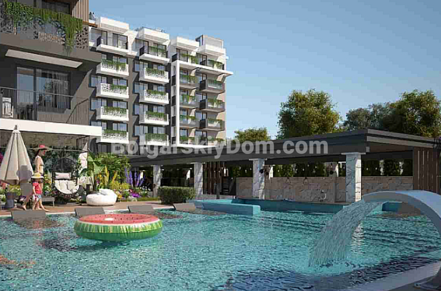 Zum Verkauf steht eine moderne Ein-Zimmer-Wohnung mit separatem Schlafzimmer und schönem Blick auf den Pool im neuen SPA-Komplex der Premiumklasse Sweet Homes 8, der sich im zentralen Teil des Ferienortes Sonnenstrand befindet. Die Anlage verbindet urbanen Wohnkomfort mit einer entspannenden Wellness-Atmosphäre und eignet sich ideal sowohl zur Eigennutzung als auch als Kapitalanlage. Die Wohnung wird schlüsselfertig übergeben und ist vollständig bezugsfertig. Sie verfügt über eine hochwertige Innenausstattung, eingebaute Eingangs- und Innentüren, Klimaanlage, ein Brandschutzsystem sowie ein komplett ausgestattetes Badezimmer mit moderner Sanitärtechnik. Die Wohnfläche beträgt 44 m². Die Wohnung liegt im dritten Stock eines Gebäudes mit Aufzug und bietet somit zusätzlichen Komfort im Alltag.