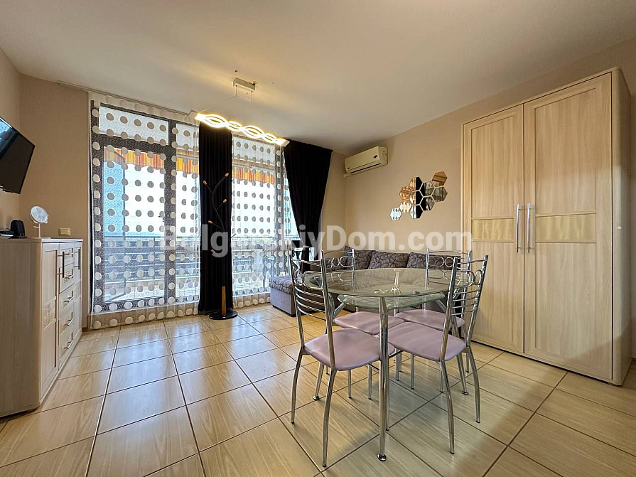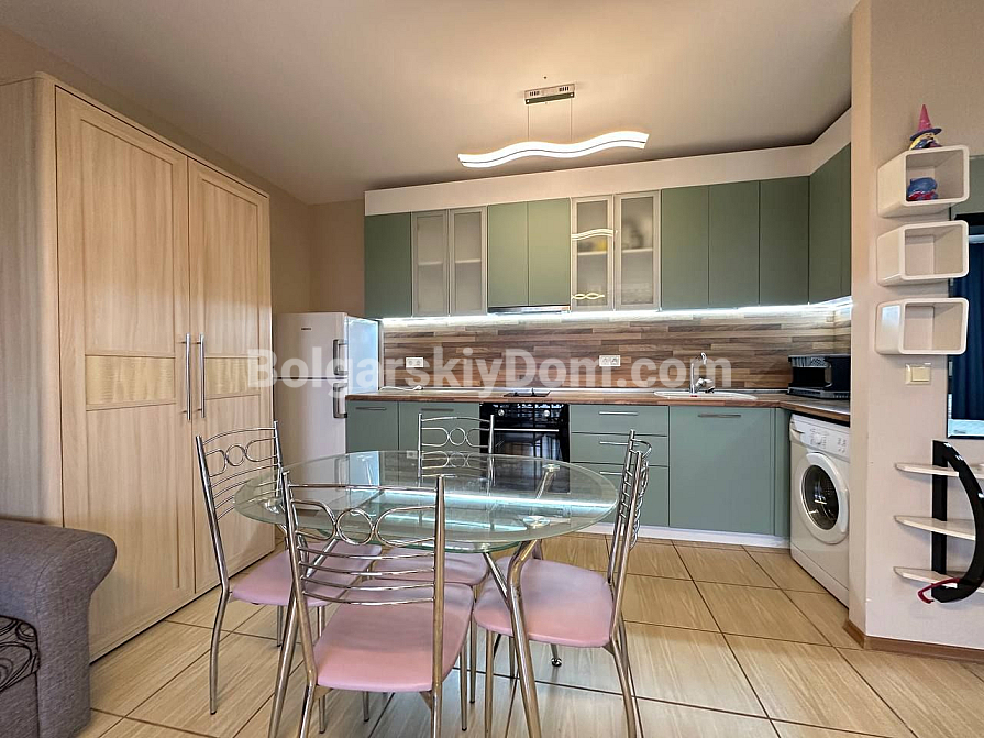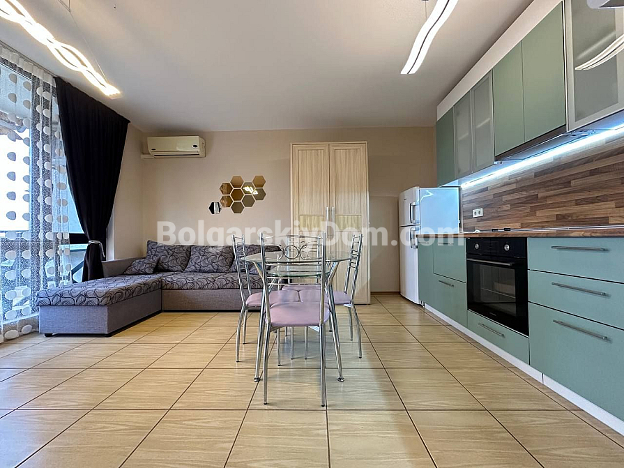 Nessebar – ein Ort, an dem Ruhe auf das lebendige Urlaubsleben trifft! Die Immobilienagentur Bolgarskiy Dom bietet eine Zwei-Zimmer-Wohnung im Wohnkomplex Viyana zum Verkauf an. Sie befindet sich im vierten Stock eines vierstöckigen Gebäudes und hat eine Gesamtfläche von 61 qm. Die Wohnung besteht aus einem Eingangsbereich, einem Wohnzimmer mit großzügiger, hochwertig ausgestatteter Küche, die in den Wohnbereich übergeht, sowie einem separaten Schlafzimmer mit eleganten Möbeln. Der große Balkon mit Blick auf die grüne Umgebung, das Flachland und die Berge ist ideal für den Morgenkaffee oder die Abendentspannung. Die Wohnung ist in ausgezeichnetem Zustand, möbliert und mit Geräten ausgestattet – bezugsfertig oder sofort vermietbar, ohne weitere Investitionen.