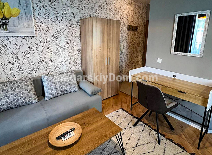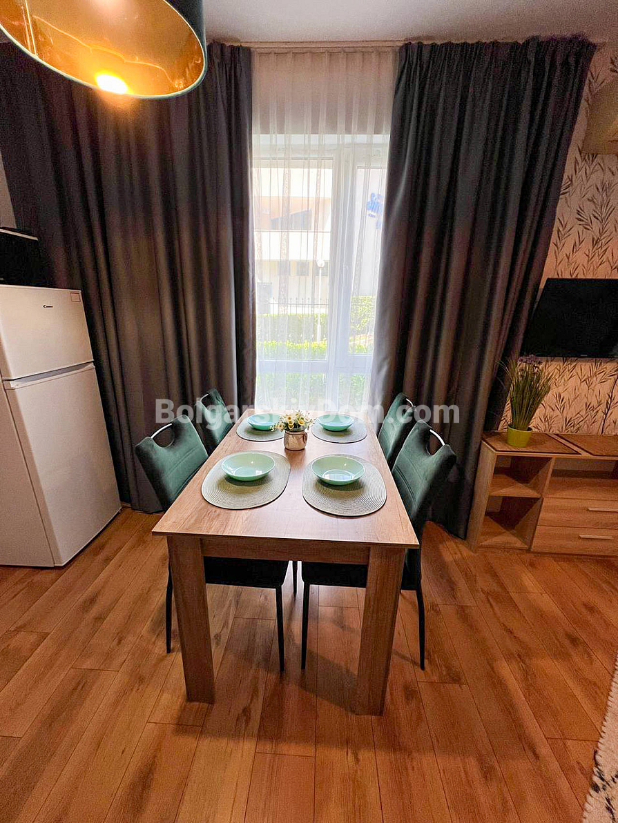 Ein Studio direkt am Meer ist eine Seltenheit – besonders in einer Wohnanlage wie Ipanema Beach. Geräumig, hell und bezugsfertig – dieses 36 m² große Apartment befindet sich im Erdgeschoss und blickt auf den gepflegten Innenhof. Der Grundriss umfasst einen Eingangsbereich, ein Wohnzimmer mit Küchenzeile, Esstisch, Ruhebereich, ein Badezimmer mit Duschkabine und eine Terrasse. Es wird mit Möbeln und Haushaltsgeräten verkauft und eignet sich sowohl für den Sommerurlaub als auch für das ganzjährige Wohnen. Die jährliche Wartungsgebühr beträgt nur 350 €.