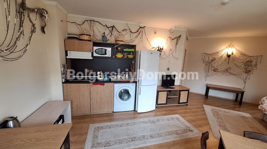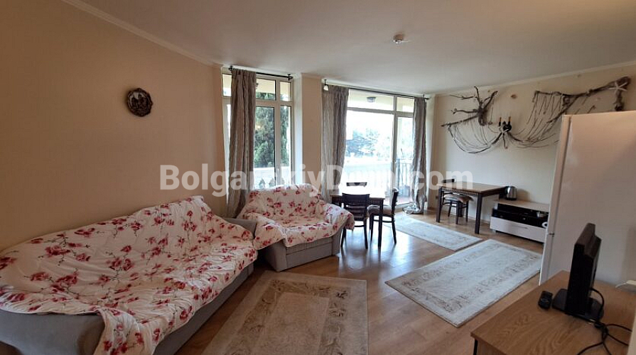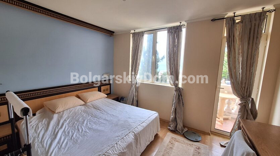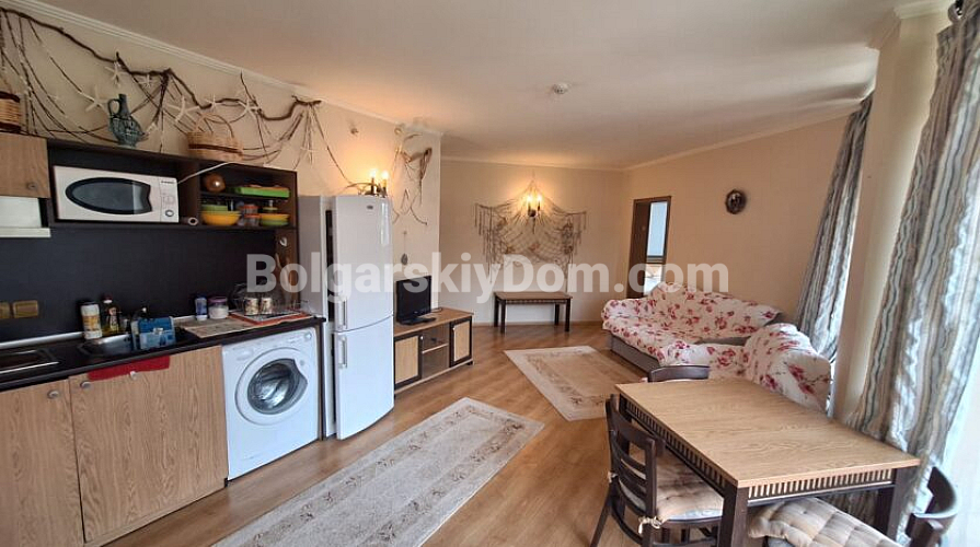 Ein großzügiges Zweizimmerapartment mit einer Fläche von 82 qm befindet sich im Atrium Beach Komplex im Ferienort Elenite, nur 40 m vom goldenen Sandstrand entfernt. Die Wohnung liegt im zweiten Stock des Gebäudes und verfügt über einen praktischen Grundriss: ein geräumiger Flur, ein helles Wohnzimmer mit Küchenzeile, ein separates Schlafzimmer, ein Badezimmer mit Badewanne sowie zwei Terrassen mit herrlichem Meerblick. Die Südausrichtung und die Panoramafenster durchfluten das Apartment mit Licht und schaffen eine gemütliche Atmosphäre. Das Apartment ist vollständig möbliert und sofort bezugsfertig.