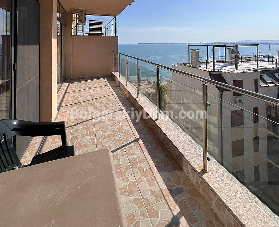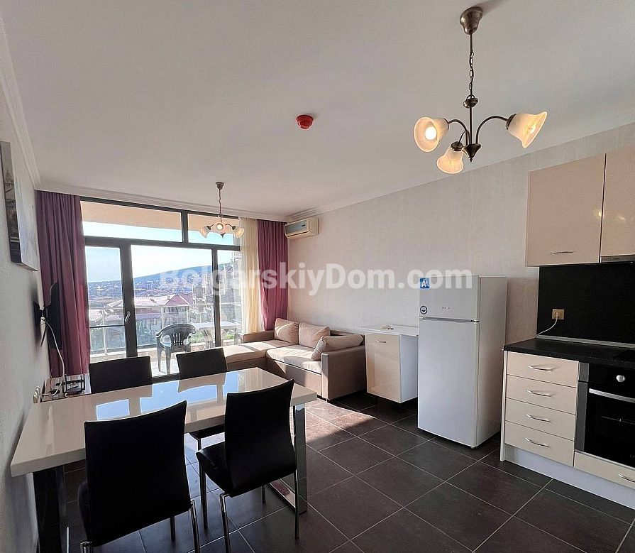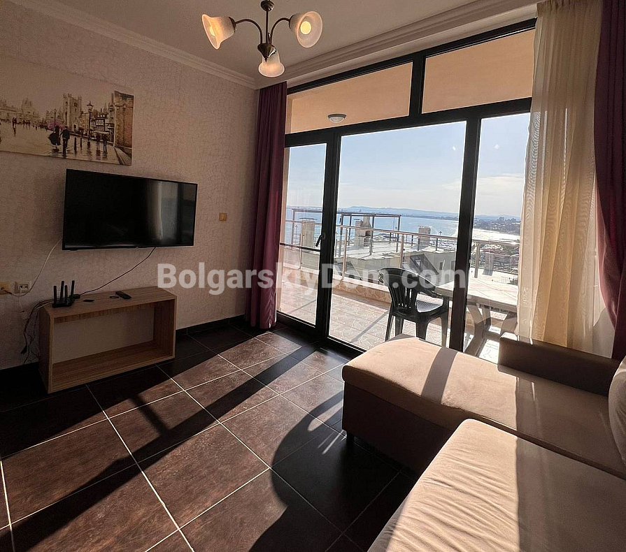 Ein einzigartiges Angebot direkt an der ersten Meereslinie! Im Dolce Vita 2-Komplex in Sveti Vlas steht eine möblierte Zweizimmerwohnung mit atemberaubendem Panoramablick auf das Meer, die Altstadt von Nessebar und den Sonnenstrand zum Verkauf. Die Wohnung mit 59,8 m² befindet sich im obersten, siebten Stock, was ausgezeichnete Aussichten und Ruhe garantiert. Ein geräumiges Wohnzimmer kombiniert mit Küche und Essbereich, ein gemütliches Schlafzimmer, ein helles Badezimmer und eine große Terrasse schaffen ein durchdachtes und komfortables Wohnkonzept, das sich sowohl für den Urlaub als auch für das ganzjährige Wohnen eignet. Die Wohnung ist bezugsfertig und ideal zum Einzug oder zur Vermietung.