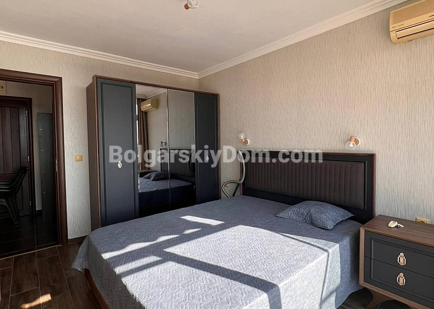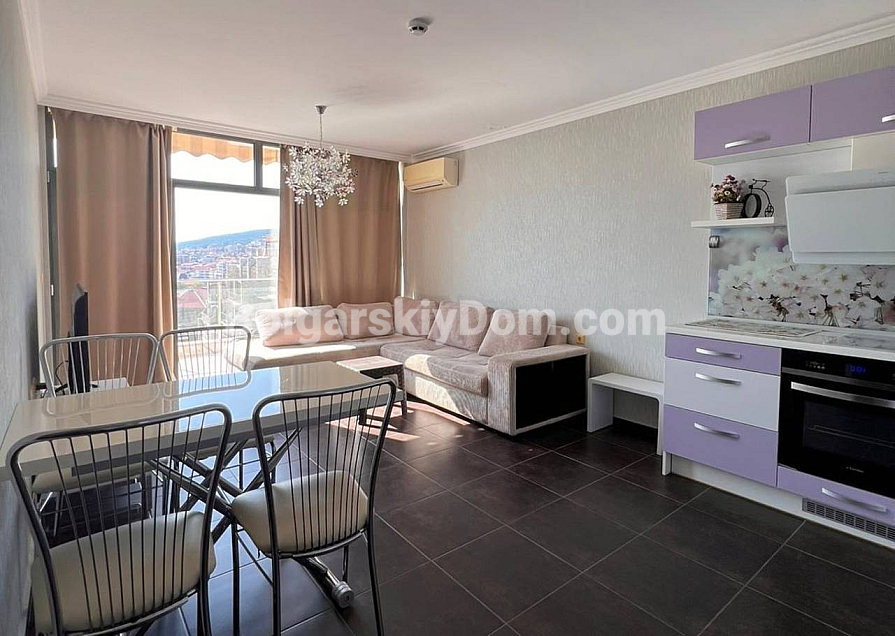 Erste Meereslinie, Panoramablick auf das Meer und Nessebar! Zum Verkauf steht eine komplett möblierte Zweizimmerwohnung im Komplex Dolce Vita 2, einem der gefragtesten Projekte in Sweti Wlas. Die Wohnung mit einer Fläche von 59 qm befindet sich im obersten, siebten Stockwerk. Sie umfasst ein helles Wohnzimmer mit Küche und Essbereich, ein gemütliches separates Schlafzimmer, ein Badezimmer mit Duschkabine sowie eine geräumige Terrasse mit malerischem Ausblick auf das Meer, Sonnenstrand und den Yachthafen. Die Wohnung ist in ausgezeichnetem Zustand und wartet bereits auf ihren neuen Besitzer – rufen Sie uns an und vereinbaren Sie eine Besichtigung.