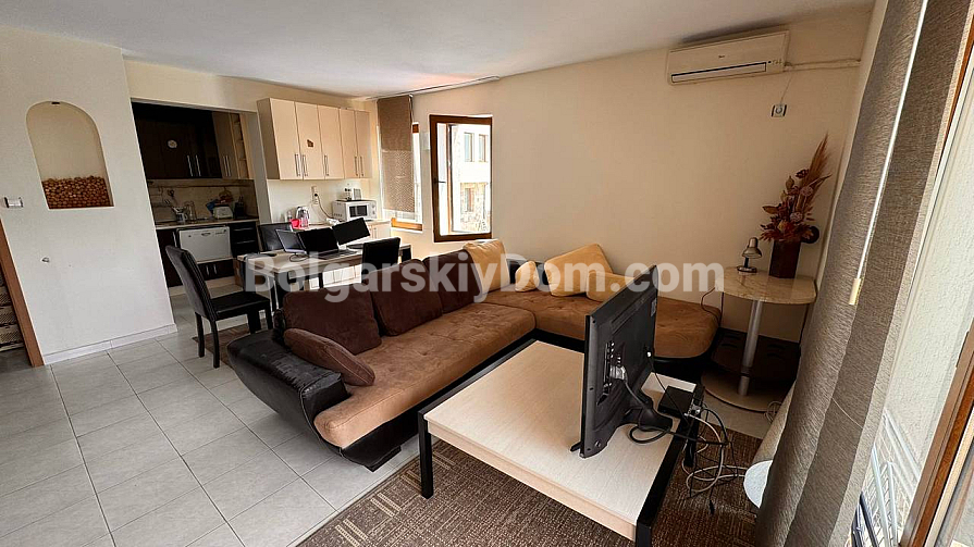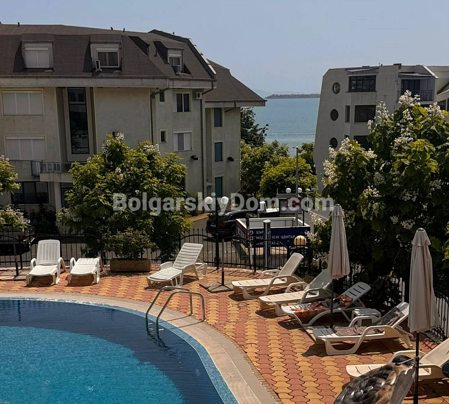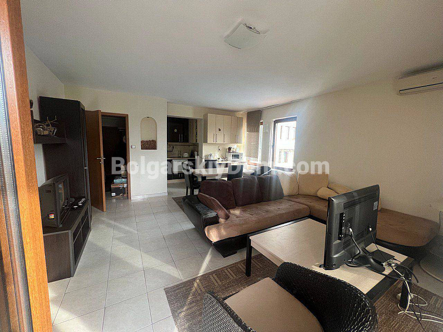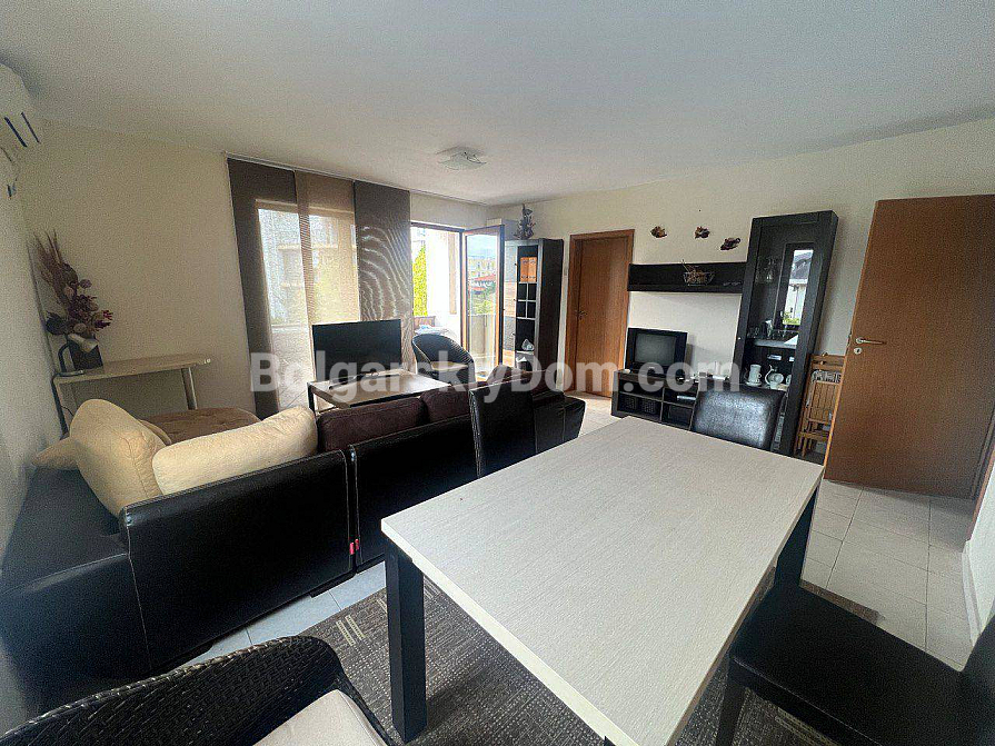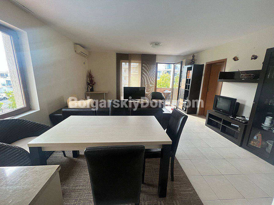 Bolgarskiy Dom präsentiert ein Top-Angebot! Eine seltene Gelegenheit im Herzen des Küstenorts Sveti Vlas – nur 100 Meter vom Meer entfernt und wenige Schritte von der Dinevi Marina. Diese großzügige Drei-Zimmer-Wohnung im Wohnkomplex Chateau Nessebar bietet 100 m² funktionale Fläche mit viel Tageslicht, zwei separaten Schlafzimmern, zwei Badezimmern, einem geräumigen Wohnzimmer mit Küche und einer herrlichen Terrasse mit Blick auf das Meer und den Pool. Die Wohnung ist vollständig möbliert und in ausgezeichnetem Zustand – eine perfekte Wahl für den Eigenbedarf oder als Investition mit hohem Mietpotenzial.