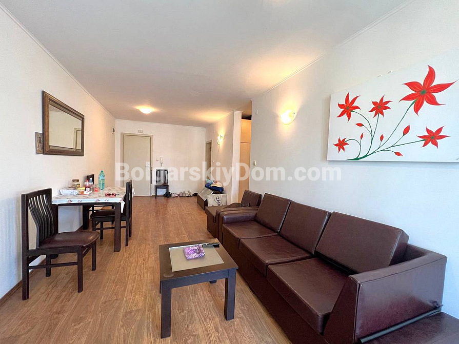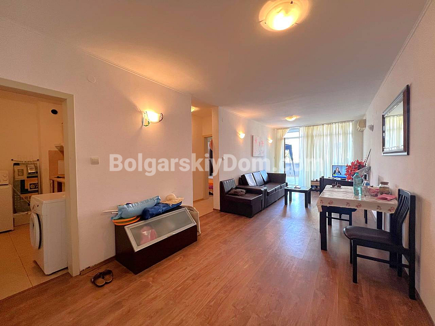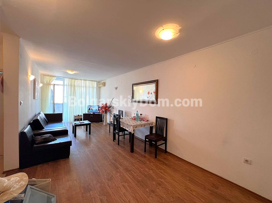 Top-Lage, große Terrasse und sofort bezugsbereit – all das erwartet Sie in einer 93 m² großen Wohnung im Komplex Prima 1 am Sonnenstrand! Gemütlicher Grundriss: helles Wohnzimmer mit Küche und Essbereich, separates Schlafzimmer, voll ausgestattetes Badezimmer und eine riesige Terrasse mit Blick auf die Straße. Möbel und Geräte sind im Preis inbegriffen – einfach einziehen und wohlfühlen. Die Wohnung befindet sich im 4. Stock und ist klimatisiert. Besichtigungen sind möglich – rufen Sie uns an!