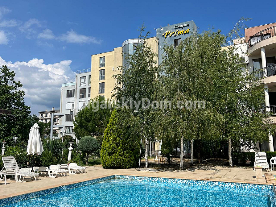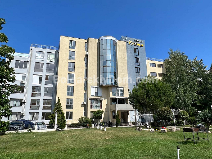 Der Komplex Prima 1 befindet sich im südlichen Teil des Sonnenstrands, nur 700 Meter vom Meer entfernt. Zur Verfügung der Bewohner und Gäste stehen ein Außen- und Kinderpool, Fitnessraum, Spielplatz, Restaurant, SPA-Bereich, Internetraum und Parkplätze. Es gibt einen 24-Stunden-Sicherheitsdienst sowie eine Servicefirma. Das Zentrum des Kurorts ist in 20 Minuten zu Fuß oder in wenigen Minuten mit dem Bus erreichbar. Die jährliche Wartungsgebühr beträgt 570 €.