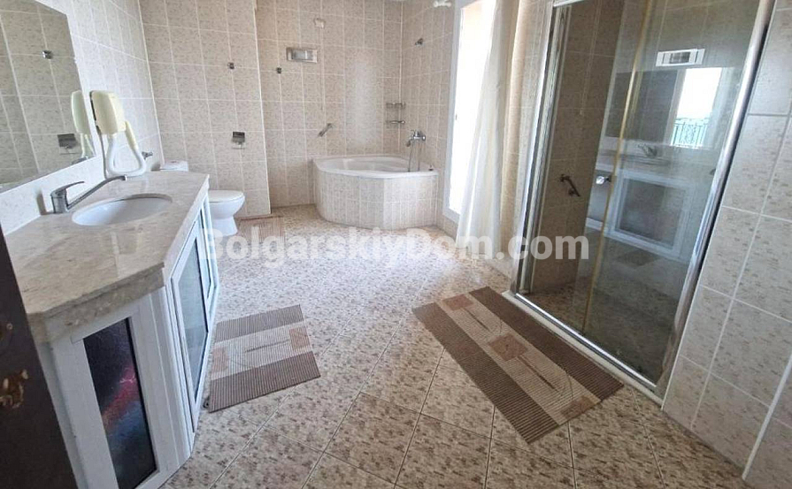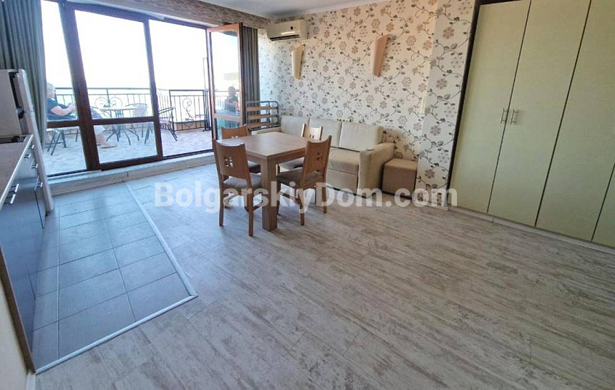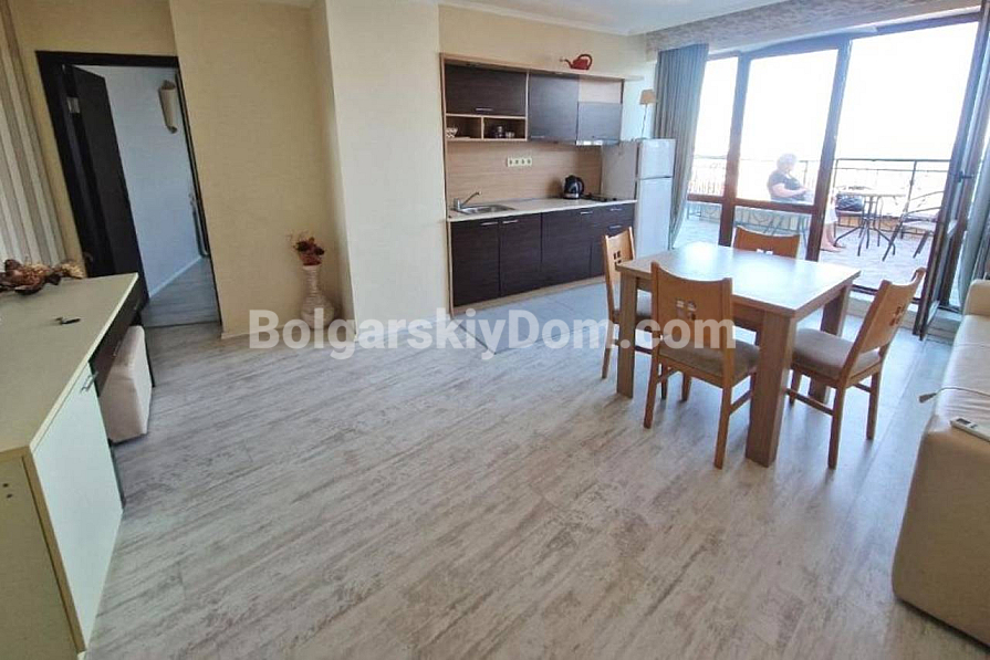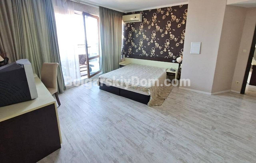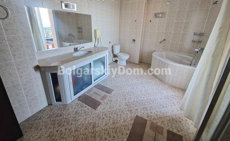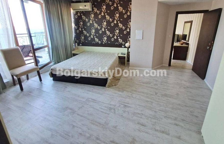 Aussichtsreiche Neuheit im Katalog! Wir präsentieren Ihnen eine großzügige Ein-Schlafzimmer-Wohnung im prestigeträchtigen Grand Hotel Komplex im malerischen Sweti Wlas – jetzt zum Verkauf durch Bolgarskiy Dom! Die Wohnung hat eine Fläche von 111 qm, befindet sich im sechsten Stock eines sechsstöckigen Gebäudes mit Aufzug und besteht aus Flur, Wohnzimmer, Schlafzimmer, modernem Badezimmer und einer Terrasse mit Meerblick. Die Immobilie verfügt über ein AKT 16 und ist vollständig bezugsfertig. Die Wartungsgebühr beträgt 40 Euro/qm pro Jahr.
