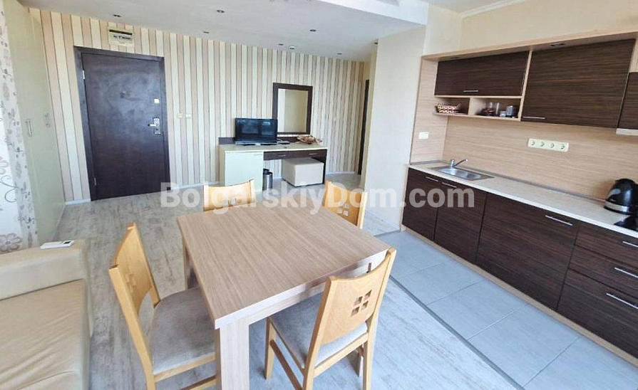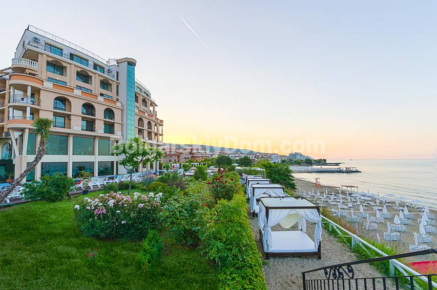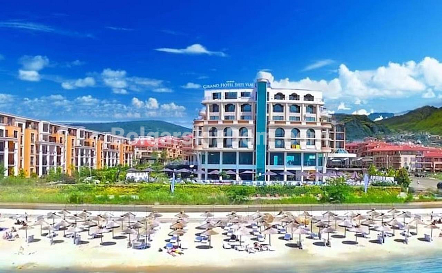 Der Grand Hotel Komplex im modernen mediterranen Stil liegt in erster Meereslinie, nur 30 Meter vom Strand entfernt, im Stadtteil Yurta von Sweti Wlas. Den Bewohnern und Gästen steht eine mehrstufige, gepflegte Infrastruktur zur Verfügung: privater Sandstrand, Pool mit Kinderbereich, Sonnenzonen mit Liegen und Sonnenschirmen, Bars und Restaurants, Kinderspielplätze und -zentrum, Volleyballfeld, Fitnessraum, Spa-Zentrum mit Sauna und Hamam, Innenpool sowie 24-Stunden-Sicherheitsdienst. Wichtig: Die Poolnutzung ist nicht in der Wartungsgebühr enthalten. Der Komplex eignet sich ideal für ganzjähriges Wohnen sowie zur erfolgreichen Vermietung. Kontaktieren Sie uns für eine Besichtigung!