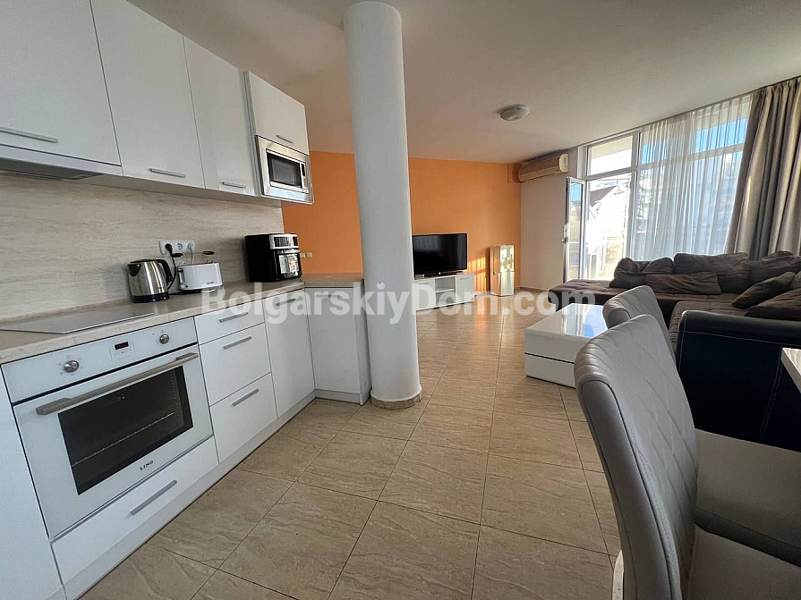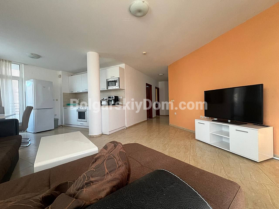 Neu im Angebot! Wir präsentieren Ihnen eine geräumige Drei-Zimmer-Wohnung im Komplex Sun Village in Sonnenstrand – fast im Zentrum des Urlaubslebens! Sie befindet sich im dritten Stock eines sechsstöckigen Gebäudes und hat eine Fläche von 101 qm. Die Wohnung wird neue Eigentümer mit frischer Renovierung, stilvollen Möbeln und allen notwendigen Geräten begeistern. Vom Balkon aus genießen Sie einen malerischen Blick auf den Pool – perfekt für den Morgenkaffee oder die abendliche Entspannung. Die Wohnung ist bezugsfertig, und die Wartungsgebühr beträgt nur 8 Euro im Jahr – ein echtes Schnäppchen. Zum Meer sind es nur 650 Meter.