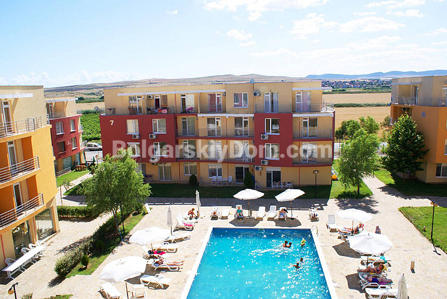 Die Wohnung befindet sich in der Anlage Sunny Day 5 in Sonnenstrand. Die Wohnanlage verfügt über ein abgeschlossenes Gelände mit ganzjähriger Sicherheit und Parkplatz. Gepflegter Komplex mit Grünflächen und Swimmingpool. Das Meer ist in wenigen Minuten erreichbar, eine Bushaltestelle befindet sich in der Nähe. Die Wartungsgebühr beträgt nur 580 Euro pro Jahr. Eine hervorragende, preisgünstige Option in einer bewohnten Wohnanlage mit der Möglichkeit des ganzjährigen Wohnens.