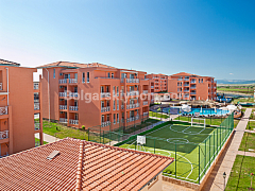Die Anlage verfügt über ein gepflegtes und ganzjährig bewachtes Gelände. Zur Verfügung der Bewohner stehen mehrere Swimmingpools, ein Restaurant und Café, ein Geschäft, ein Tennisplatz, Sportplätze für Volleyball, Minifußball und Basketball, Minigolf, Kinderspielplätze und bequeme Parkmöglichkeiten. Die Wartungsgebühr beträgt 580 € pro Jahr und umfasst die Nutzung der Infrastruktur, Sicherheitsdienst, Reinigung der Gemeinschaftsbereiche und Pflege der Grünanlagen. Entfernung zum Flughafen Burgas — 25 km, zum Flughafen Varna — ca. 110 km. Der Komplex eignet sich perfekt für ganzjähriges Wohnen oder als Investition in eine Immobilie am Meer.
