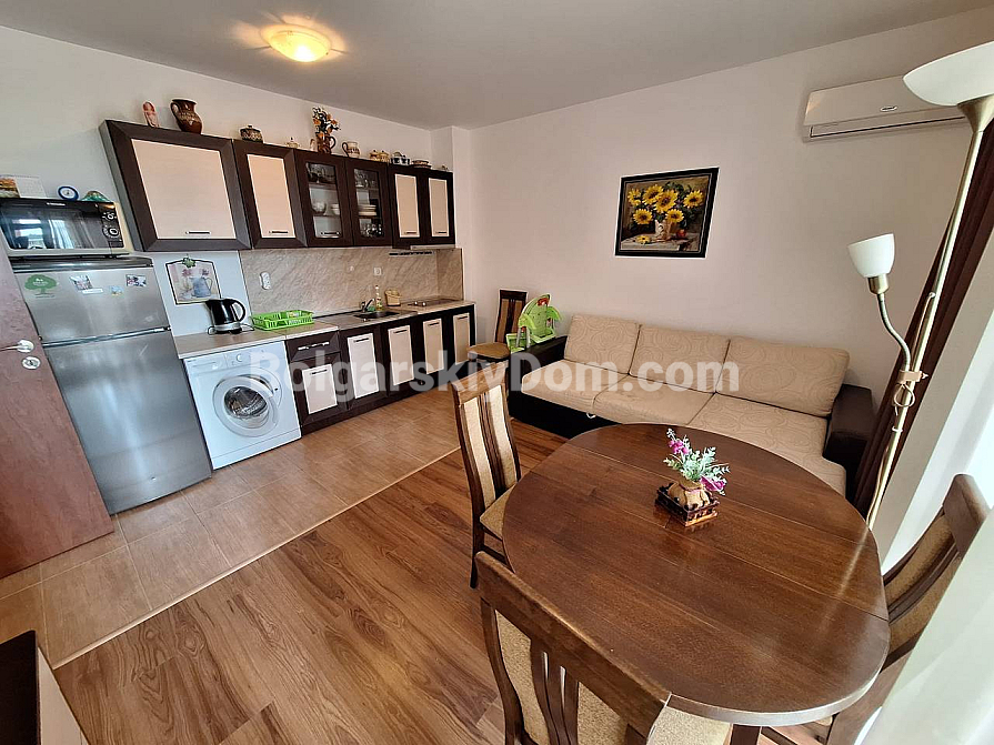 Meeresnähe und hohe Liquidität – und all das in einer Neuheit unseres Katalogs! Bolgarskiy Dom präsentiert Ihnen eine Zwei-Zimmer-Wohnung mit 52 qm im zweiten Stock der Wohnanlage Victorio 3 in Sveti Vlas. Das Apartment mit fertiger Renovierung und kompletter Ausstattung umfasst ein Wohnzimmer, ein Schlafzimmer, ein Badezimmer mit Duschkabine und eine Terrasse für den Morgenkaffee. Das helle Interieur und die hochwertige Möblierung sorgen für Gemütlichkeit, und der ausgezeichnete Zustand ermöglicht sofortigen Einzug oder Vermietung. Der kompakte Grundriss und das Clubformat der Anlage ziehen sowohl Touristen als auch Investoren an. Kontaktieren Sie Ihren Makler, um zu den Ersten zu gehören, die die Wohnung besichtigen!