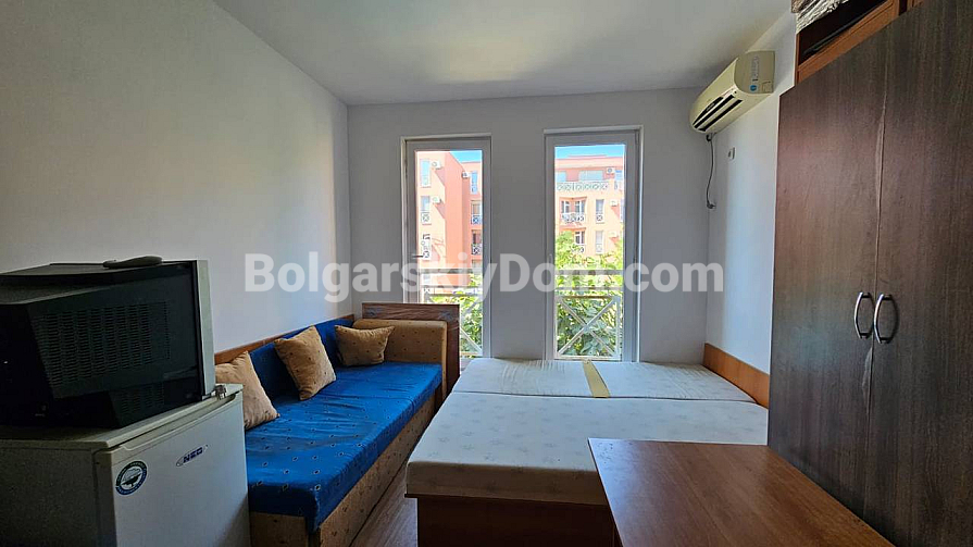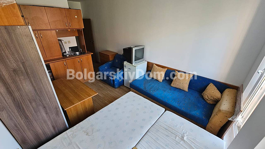 TOP-Preis! Zum Verkauf steht ein helles und gemütliches Studio mit einer Fläche von 26 m² in einer beliebten Anlage in der Nähe von Sonnenstrand. Die Wohnung befindet sich im zweiten Stock und ist komplett bezugsfertig, sowohl zum Wohnen als auch zur Vermietung. Sie ist mit den notwendigen Grundgeräten ausgestattet (Mini-Kühlschrank, Fernseher, Boiler, Klimaanlage und Herd) sowie mit viel Möbeln für komfortables Wohnen und Entspannen. Keine Terrasse. Die Fenster gehen zum Innenhof mit Pool.
