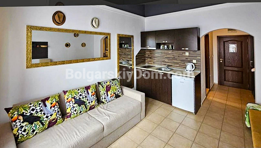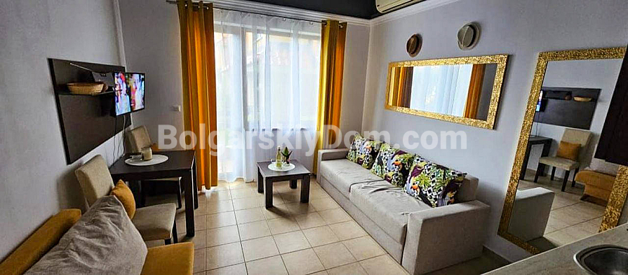 Zustand wie bei einer Neubauimmobilie! Zum Verkauf steht ein gemütliches Studio-Apartment im prestigeträchtigen SPA-Komplex Diamant Residence, der nur wenige Schritte von einem der schönsten Sandstrände von Sonnenstrand entfernt liegt. Das Apartment hat eine Fläche von 30 qm, befindet sich im Erdgeschoss und umfasst ein helles Wohn-/Schlafzimmer mit Küchenzeile, ein Badezimmer mit Duschkabine und eine Terrasse. Die Wohnung ist komplett möbliert, in gutem Zustand und bezugsfertig ohne zusätzliche Kosten. Haushalttarife für Strom und Wasser sind angeschlossen. Ein Top-Angebot sowohl zur Eigennutzung als auch für Investitionen – wir freuen uns auf Ihren Anruf!