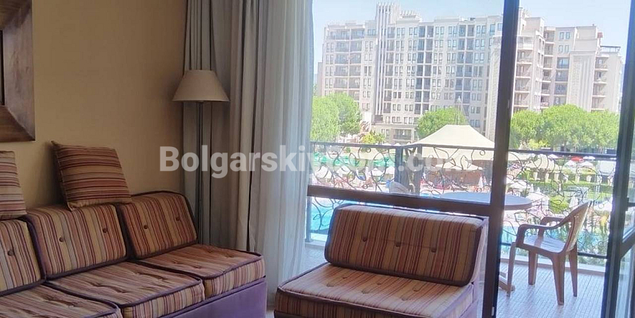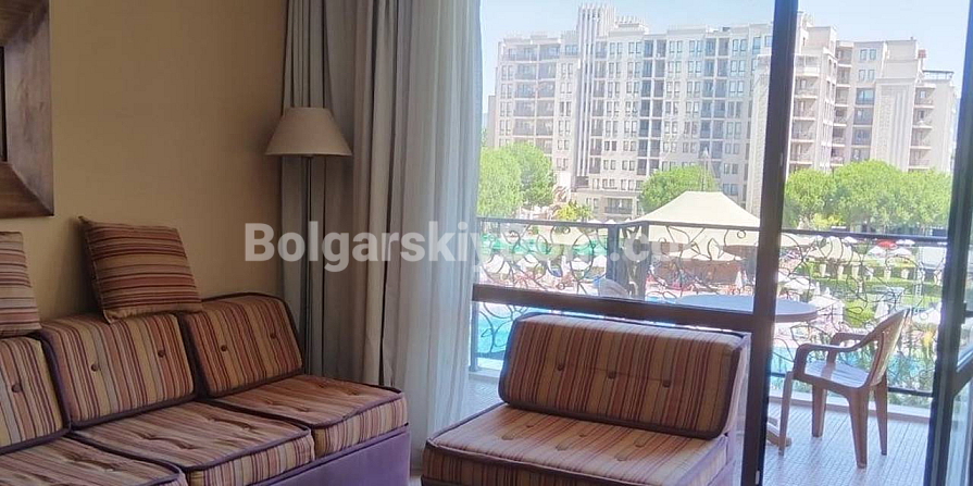 Ausgezeichnete Option für das Leben am Meer von Bolgarskiy Dom! Eine geräumige Zwei-Zimmer-Wohnung mit 69 qm im Premium-Komplex Barceló Royal Beach ist eine hervorragende Wahl sowohl für Urlaub als auch als Investition. Die Wohnung befindet sich im 2. Stock, nur 200 Meter vom Meer entfernt, und umfasst ein Wohnzimmer mit Küche, Schlafzimmer, Badezimmer mit Badewanne und eine Terrasse mit Blick auf den Pool. Die Wohnung ist komplett möbliert, verfügt über ein vollständiges Bad, ein angenehmes Interieur und einen guten Wohnzustand. Empfohlen als Investitionsobjekt mit hohem Vermietungspotenzial oder als komfortables Zuhause an der Küste.
