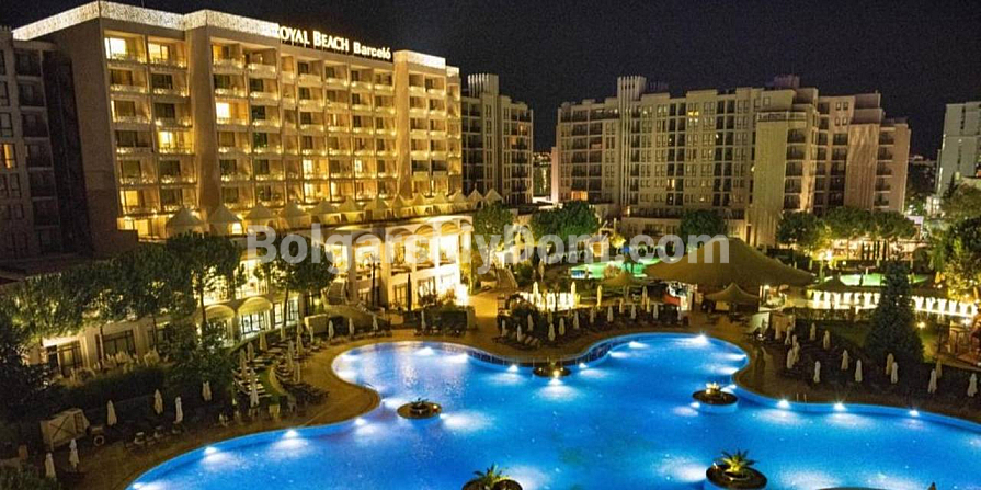 Der Komplex Barceló Royal Beach ist ganzjährig in Betrieb und liegt fast im Zentrum des Ferienorts Sonnenstrand, mit Premium-Serviceleistungen. Vor Ort gibt es Schwimmbäder mit Entspannungsbereichen, einen Kinderspielplatz und -club, Fitnessstudio, SPA- und Wellnesscenter, Massageräume, Restaurants, Bars und sogar ein eigenes Einkaufszentrum. Das geschlossene, gesicherte Gelände verfügt über Videoüberwachung und Parkplätze. Die Wartungsgebühr beträgt 17 €. Bereit für Besichtigungen – rufen Sie uns an!