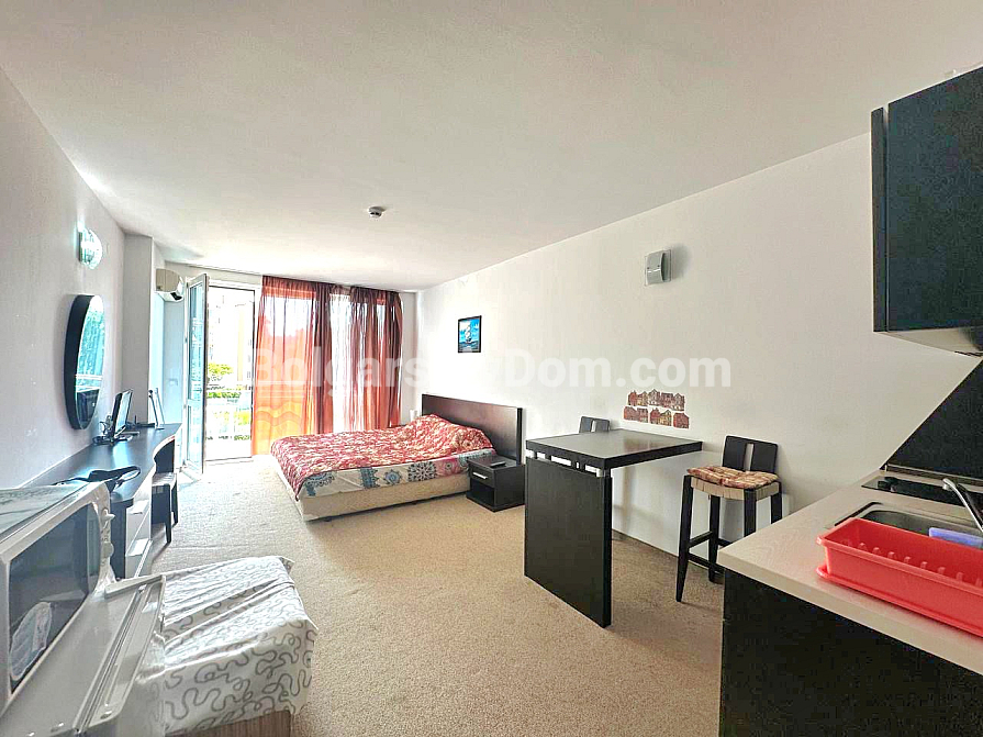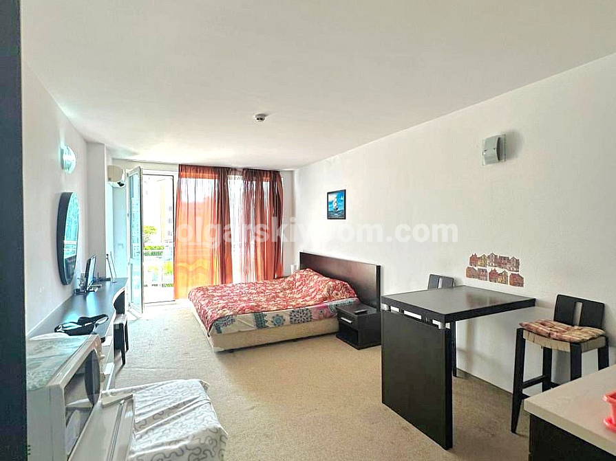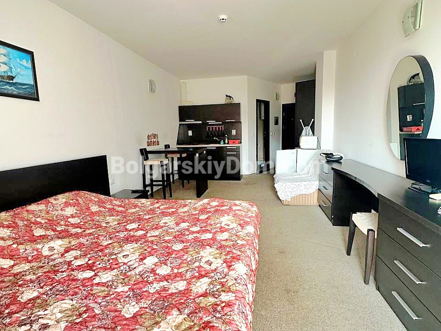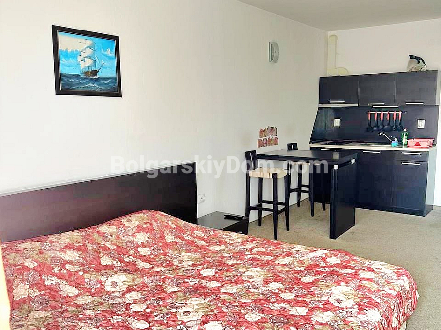 Die Wohnung befindet sich im Stadtteil Sarafovo, Burgas, in zweiter Reihe zum Meer, in der großen Wohnanlage „Atlantis“. Das Studio mit einer Gesamtfläche von 43 qm umfasst: einen Flur, einen Wohnbereich mit Küchen- und Esszone, eine Relax-Ecke, ein Badezimmer mit Duschkabine sowie einen geräumigen Balkon. Die Immobilie liegt im 2. Stock eines Gebäudes mit Aufzug. Sie wird mit Möbeln und Haushaltsgeräten verkauft.