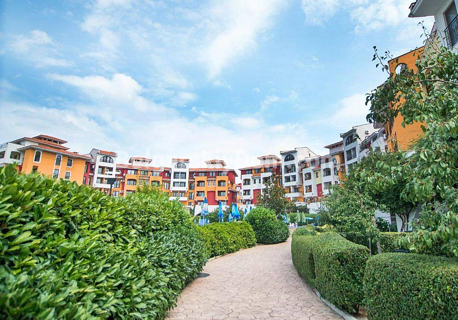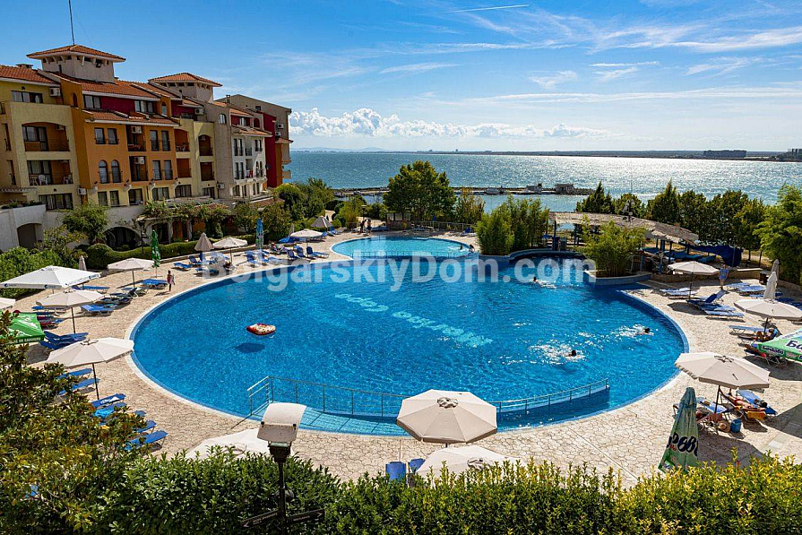 Marina Cape am Ufer der Bucht von Aheloy verbindet Strandurlaub und Komfort in nur 50 Metern Entfernung zum Meer. Die Anlage bietet mehrere Pools für Erwachsene und Kinder, einen eigenen Strand und sogar einen Yachthafen. Zudem gibt es ein Spa-Center und ein Restaurant mit Meeresküche, während die jährliche Wartungsgebühr von 12 € pro qm die Pflege der Parkanlagen und die Sicherheit abdeckt. Die Nähe zu Sonnenstrand, Nessebar und Pomorie eröffnet Zugang zum Action-Wasserpark und zu historischen Museen und macht den Standort ideal, um die Schwarzmeerregion Bulgariens zu erkunden.