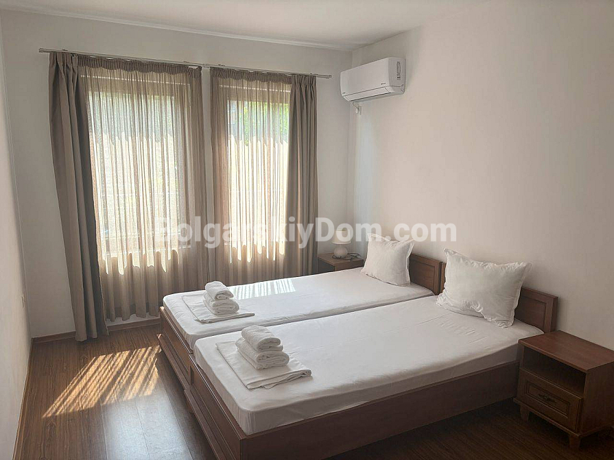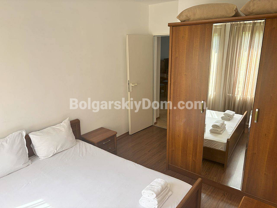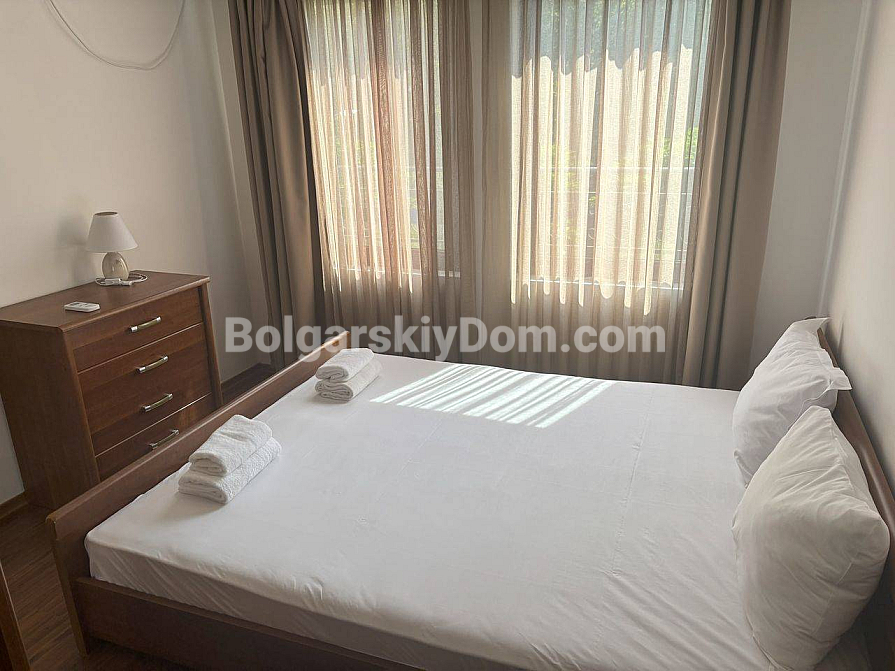 Panoramablick auf das Meer direkt von der Terrasse Ihrer neuen Wohnung! Bolgarskiy Dom präsentiert eine Zwei-Schlafzimmer-Wohnung, die bereits vollständig für ihre neuen Eigentümer vorbereitet ist. Das Wohnzimmer mit Küche führt auf einen geräumigen Balkon, ideal, um Sonnenuntergänge zu genießen. Zwei separate Schlafzimmer sorgen für Privatsphäre, und das Badezimmer mit Badewanne bietet zusätzlichen Komfort für den Alltag. Die Wohnung ist dank der im Preis enthaltenen Möbel und Geräte bezugsfertig, und Akt 16 garantiert Zuverlässigkeit für ganzjähriges Wohnen oder zur Vermietung. Die Gesamtfläche beträgt 100 qm, gelegen im bequemen zweiten Stock eines sechsstöckigen Gebäudes. Wichtig: individueller Stromzähler.