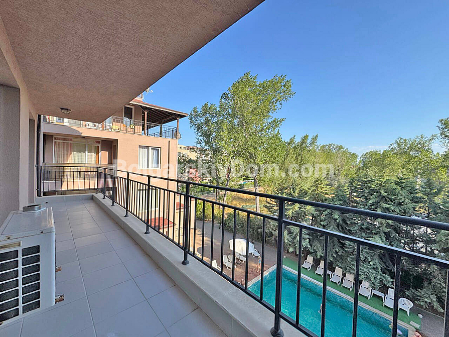 Die Anlage Sveta Sofia liegt in einer ruhigen und malerischen Gegend von Sonnenstrand, umgeben von Natur und fernab vom Lärm der Hauptstraßen. Nur 450 Meter trennen Sie von den sanften Wellen des Schwarzen Meeres. Das abgeschlossene Gelände der Anlage vermittelt ein Gefühl von Privatsphäre und Sicherheit, während die niedrige Wartungsgebühr von 8 € pro Quadratmeter den Besitz hier noch vorteilhafter macht. Das Viertel gilt als gut angebunden, mit einfachem Zugang zu allen notwendigen Infrastrukturen, und der nahegelegene Fluss verleiht der Umgebung einen besonderen Charme.