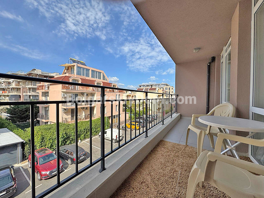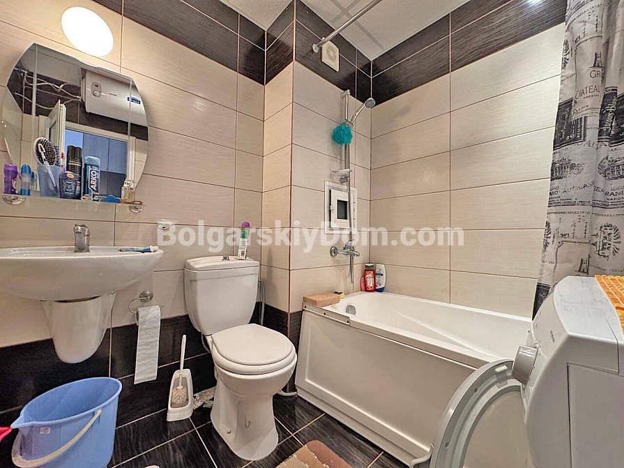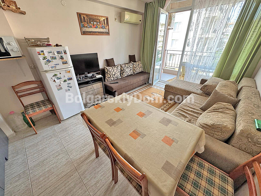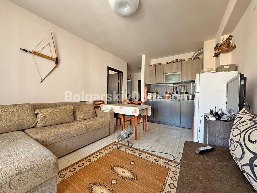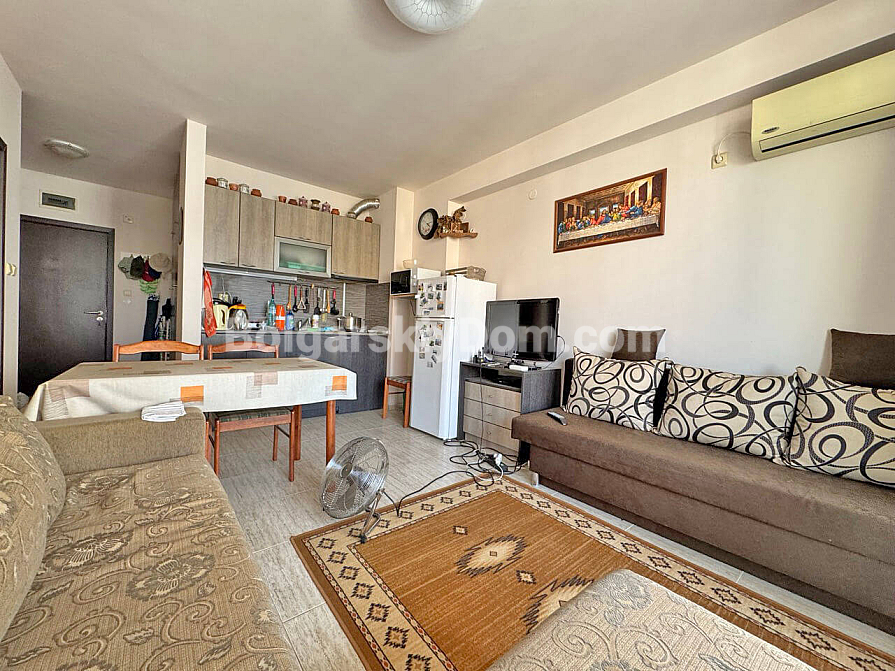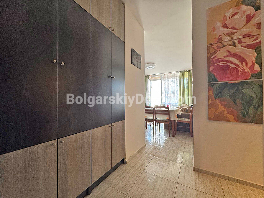 Sonnenstrand, 15 Minuten vom Meer – schlüsselfertige Wohnung! Wir präsentieren Ihnen eine gemütliche Ein-Schlafzimmer-Wohnung, die sich ideal sowohl für den Sommerurlaub als auch für ein komfortables ganzjähriges Wohnen eignet. Sie befindet sich im dritten Stock eines sechsstöckigen Gebäudes. Der durchdachte Grundriss nutzt die 60 qm optimal: ein geräumiges Wohnzimmer mit Küche und Essbereich, ein separates Schlafzimmer, ein Flur und ein Badezimmer mit Badewanne. Die schattige Terrasse wird Ihr Lieblingsplatz an heißen Tagen. Die Wohnung wird komplett möbliert verkauft und ist bezugsfertig, während der großzügige Garderobenbereich das Stauraumproblem löst.