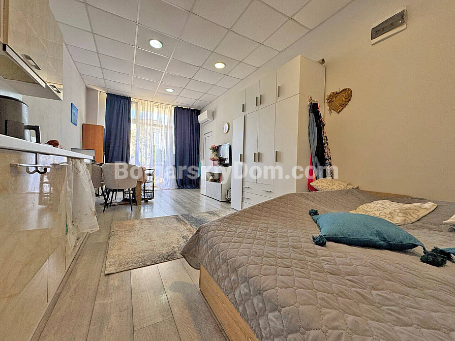 Im Katalog der Agentur Bolgarskiy Dom ist ein geräumiges Studio im Komplex Acapulco erschienen. Die Wohnung befindet sich im Erdgeschoss eines sechsstöckigen Gebäudes, hat eine Fläche von 42 m² und ist bezugsfertig. Der Innenbereich umfasst ein Wohnzimmer, ein Badezimmer und eine Terrasse. Das Vorliegen des Aktes 16 bestätigt die Rechtmäßigkeit des Baus und die Bewohnbarkeit, was bedeutet, dass die Transaktion so schnell und sicher wie möglich abgewickelt werden kann.