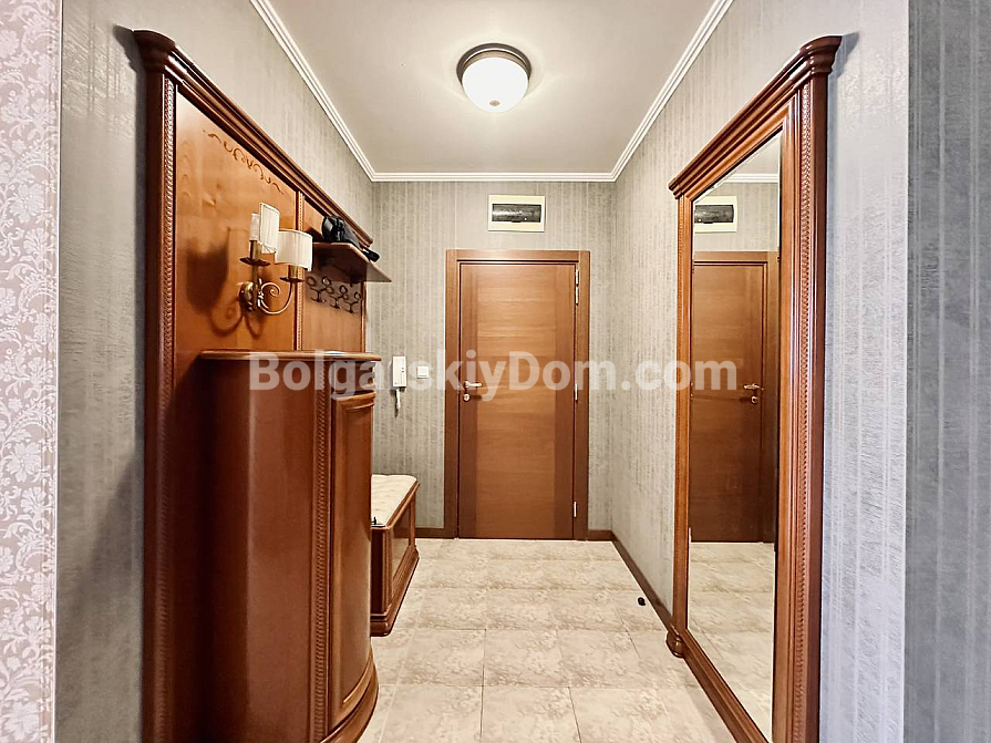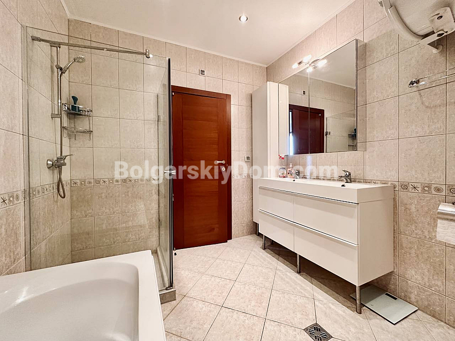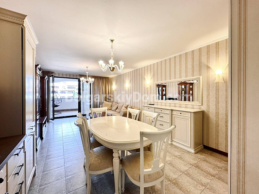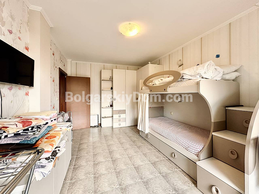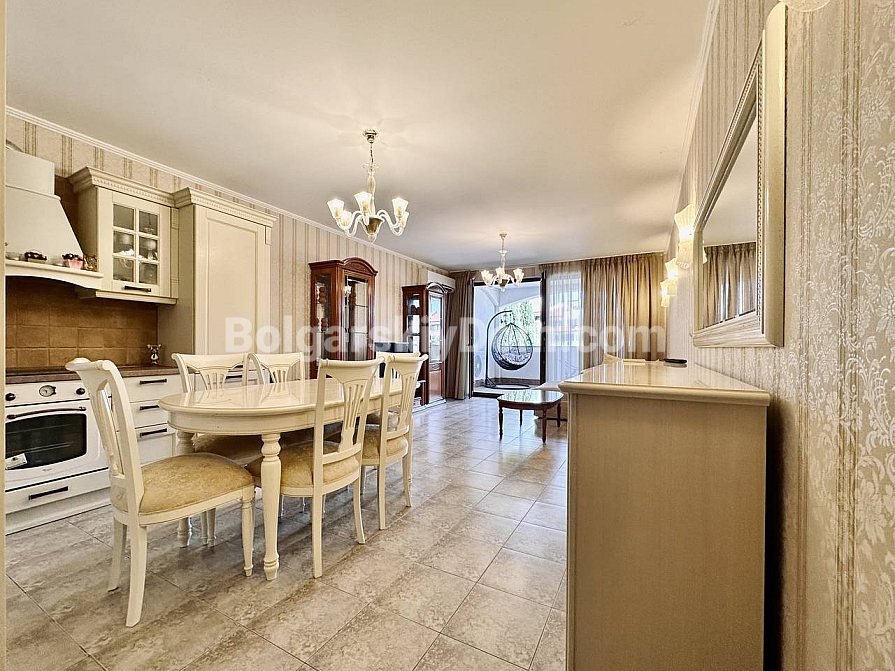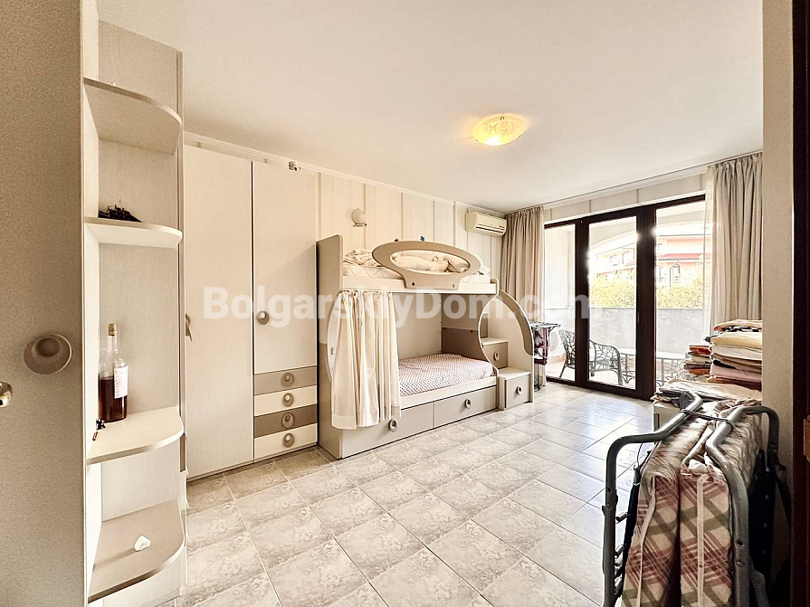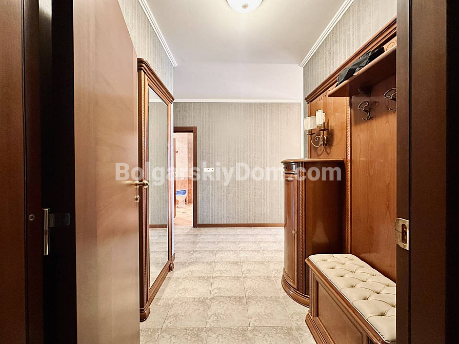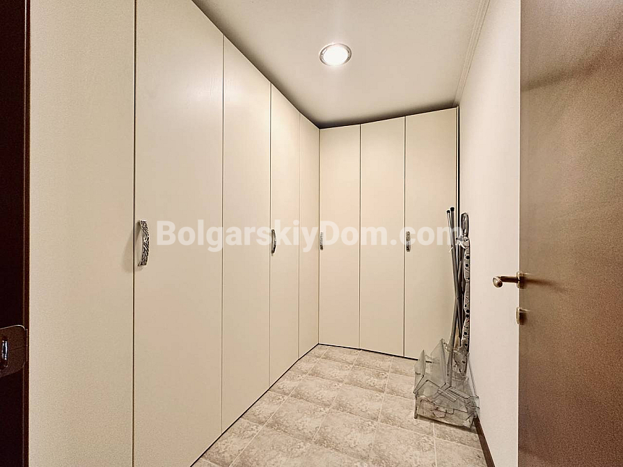 Exklusive Wohnung mit Aussicht im Premium-Segment! Das Immobilienbüro Bolgarskiy Dom präsentiert Ihnen eine großzügige Dreizimmerwohnung im Elitekomplex Casa Real in Sweti Wlas. Mit einer Gesamtfläche von 149,25 qm gehört sie zu den größten und komfortabelsten ihrer Klasse. Die Wohnung besteht aus einem Eingangsbereich, einem geräumigen Flur, einem großen Wohnzimmer mit Küche und Essbereich, zwei Schlafzimmern, zwei Badezimmern und zwei Terrassen. Die Immobilie ist vollständig möbliert und für den dauerhaften Aufenthalt ausgestattet: Alle notwendigen Geräte sind vorhanden, darunter Kühlschrank, Herd und Waschmaschine, ebenso Geschirr und Küchenutensilien. Besonders hervorzuheben sind der geräumige begehbare Kleiderschrank und das eigene Badezimmer in einem der Schlafzimmer.