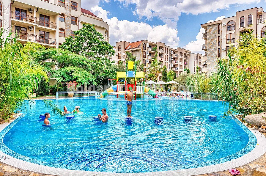 Die Wohnanlage Cascadas ist eine wahre Oase für komfortables Leben im Herzen von Sonnenstrand. Die Lage – nur 500 Meter vom Meer entfernt – ermöglicht es, den Strand in 10–15 Minuten zu Fuß zu erreichen. Der Komplex verfügt über eine gut entwickelte Infrastruktur, die das ganze Jahr über funktioniert: zahlreiche Pools, Cafés, Schönheitssalons, ein Spa- und ein Fitnesscenter für alle, die Wert auf ihre Gesundheit legen. Hier herrscht eine besondere, unverwechselbare Atmosphäre, die zu Entspannung und Ruhe einlädt.