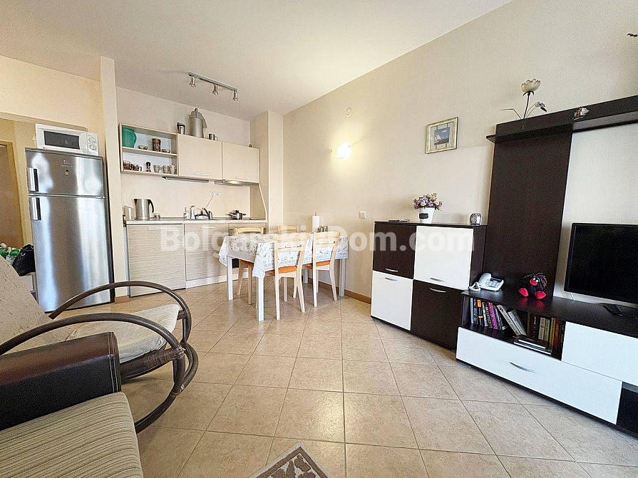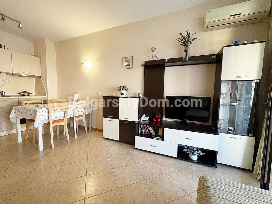 Im Katalog unserer Agentur ist eine gemütliche Zweizimmerwohnung im großen Komplex Royal Sun erschienen, der im südlichen Teil von Sonnenstrand liegt. Die Wohnung hat eine Fläche von 49 qm und befindet sich im Erdgeschoss. Sie wird mit allen Möbeln und Haushaltsgeräten verkauft, sodass Sie sofort einziehen und Ihren Urlaub genießen können, ohne Zeit für die Einrichtung zu verlieren. Ein zusätzlicher Vorteil sind die günstigen Haushaltstarife für Nebenkosten, die dieses Angebot noch attraktiver für einen langfristigen Aufenthalt machen.