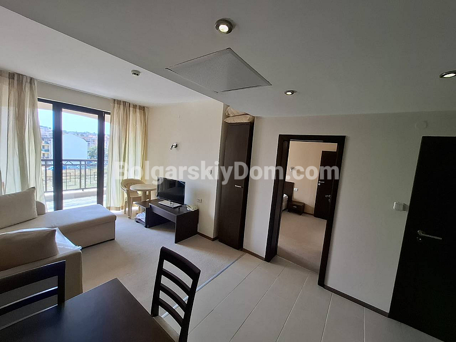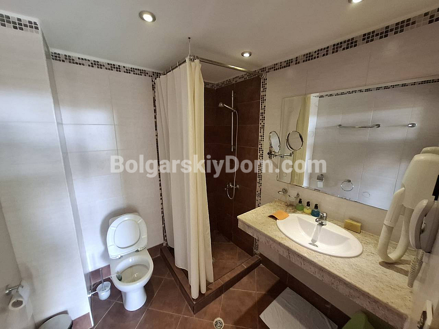 Bolgarskiy Dom präsentiert! In unserem Katalog ist nun ein einzigartiges Apartment im Vier-Sterne-Hotel Casablanca verfügbar. Der Strand ist nur 100 Meter entfernt, gleichzeitig ist die Lage ruhig und angenehm. Das Apartment hat eine Fläche von 70,6 qm, befindet sich im vierten Stock und bietet einen herrlichen Blick auf das Meer, die Stadt und die Berge – eine echte Kombination. Die Raumaufteilung umfasst ein Wohnzimmer mit Kochnische, einen separaten Ankleideraum, ein Schlafzimmer, zwei Badezimmer und eine gemeinsame Terrasse. Die Wohnung ist komplett mit allen Haushaltsgeräten ausgestattet, verfügt über Klimaanlage, Internet und digitales Fernsehen. Eigene Zähler für Strom und Wasser sind installiert.