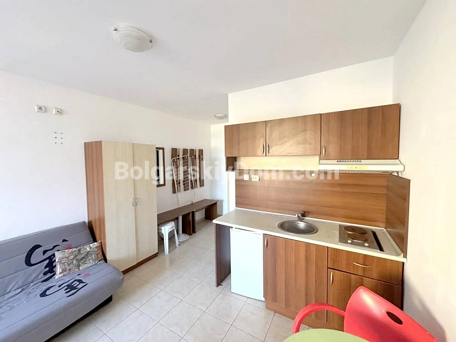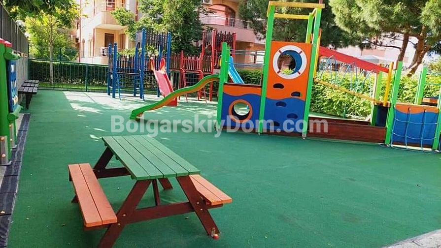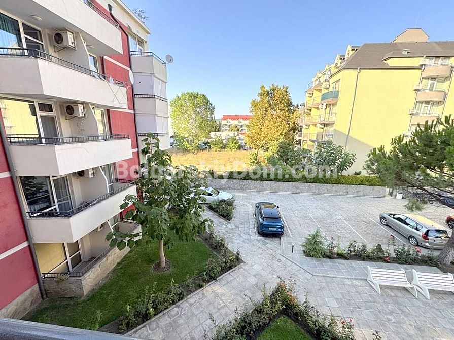 Die Wohnung befindet sich im Wohnkomplex Rose Residence, der in einem ruhigen Teil von Sonnenstrand liegt, nur 600 Meter vom Meer entfernt. Die Anlage wurde nach hohen Standards gebaut und bietet den Eigentümern einen Pool, einen gepflegten Innenhof, Sicherheit und Parkplätze – ein Standardpaket, das oft völlig ausreicht. Diese Lage ermöglicht einen einfachen Zugang zur gesamten städtischen Infrastruktur, einschließlich Restaurants und Geschäften. Die jährliche Wartungsgebühr beträgt 12 Euro pro Quadratmeter.