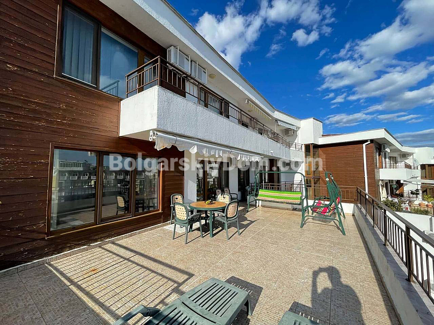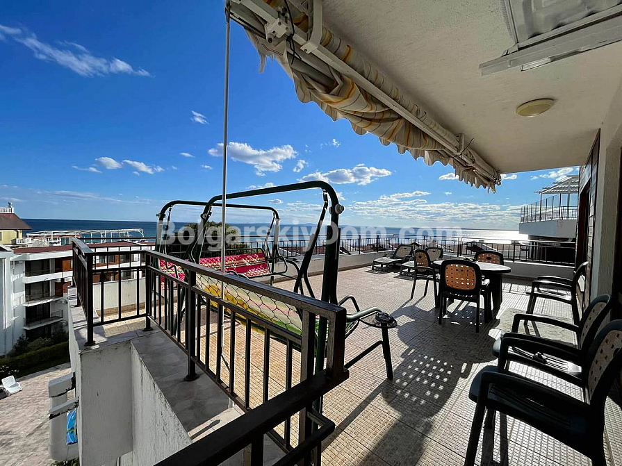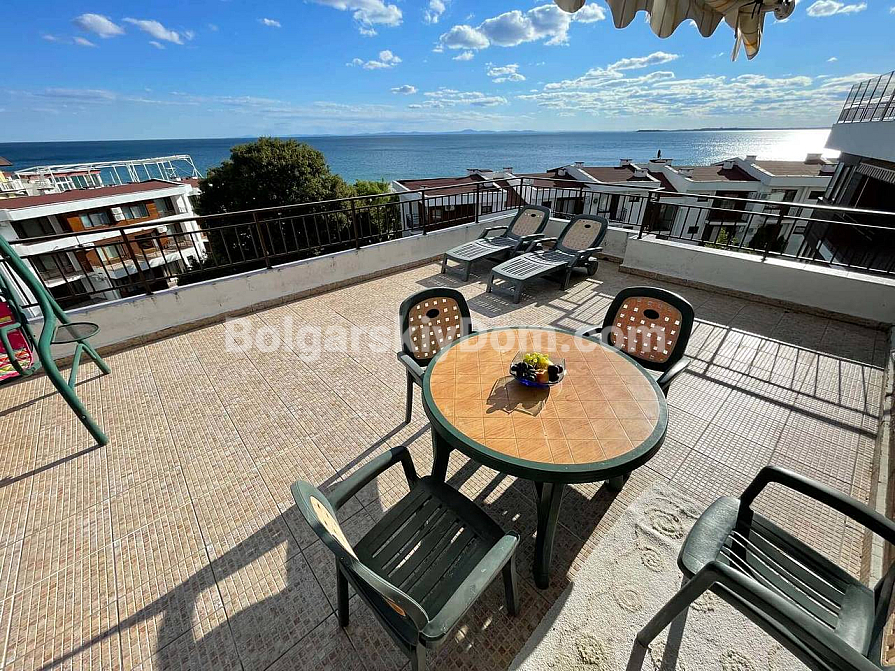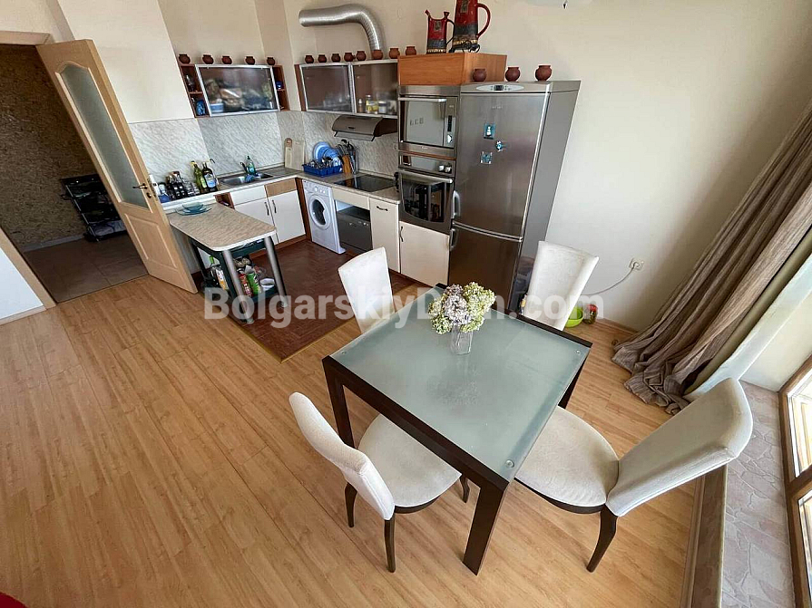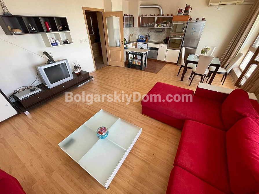 Bolgarskiy Dom präsentiert ein wirklich einzigartiges Objekt, das mit seiner Größe und dem luxuriösen Blick auf das Schwarze Meer beeindruckt, der sich direkt aus den Fenstern eröffnet! Im geschlossenen Komplex Messambria Fort Beach wird eine geräumige Zwei-Schlafzimmer-Wohnung mit einer Gesamtfläche von 151 qm zum Verkauf angeboten, die sich im dritten Stock befindet. Die Wohnung besteht aus einer vollwertigen Diele mit breitem Korridor, einem großzügigen Wohnzimmer mit Küche und Essbereich, zwei Schlafzimmern und zwei voll ausgestatteten Badezimmern. Das Highlight ist eine große Terrasse mit Panoramablick auf das Meer und den Pool. Die Wohnung ist komplett möbliert, mit allen Haushaltsgeräten ausgestattet und sofort bezugsfertig – ein echtes Kombi-Angebot angesichts des Preises!