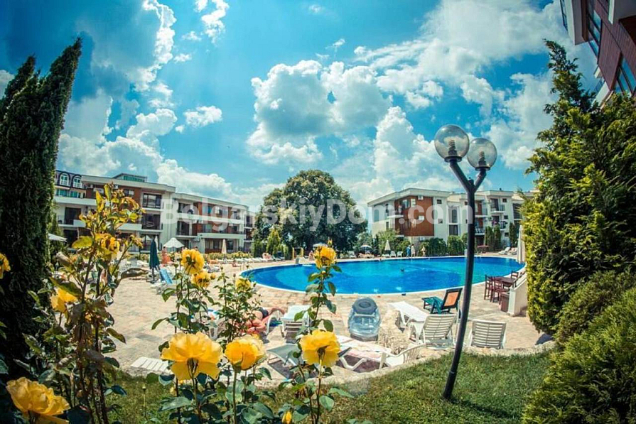 Die Anlage befindet sich in Elenite, nur 50 Meter vom Meer entfernt – der Strand beginnt praktisch direkt hinter dem Gelände. Die Instandhaltung der Immobilie wird durch eine jährliche Gebühr von 14 Euro pro qm gewährleistet, die Verwaltung, Pflege des Pools und der Grünflächen, Beleuchtung und Reinigung der Gemeinschaftsbereiche sowie einen 24/7-Sicherheitsdienst umfasst. Dank des sehr attraktiven Preises pro Quadratmeter ist dieses Apartment eine hervorragende Investition in Komfort und Lebensqualität an der Küste.