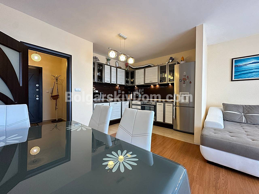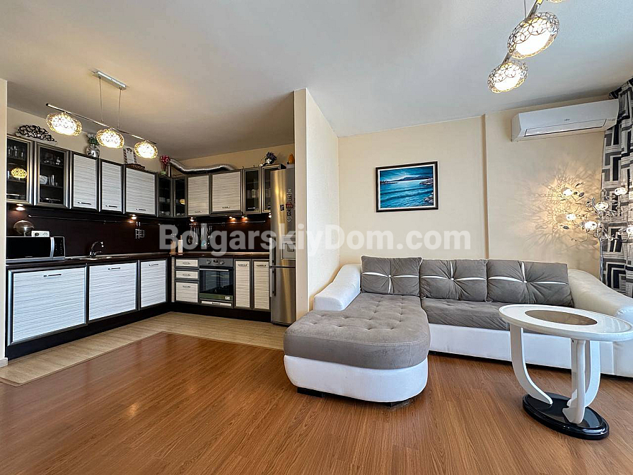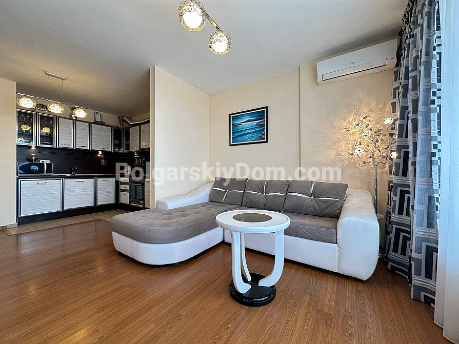 Eine Traumwohnung für alle, die sich ein eigenes gemütliches Zuhause in einer ruhigen, grünen Lage an der Schwarzmeerküste wünschen. Zweizimmerwohnung mit einem stilvollen, ansprechenden Interieur: 74 qm, komfortabler vierter Stock, nur 300 Meter bis zum Meer. Sie verfügt über zwei großzügige Terrassen mit atemberaubendem Panoramablick auf das Meer. Gemütliches Schlafzimmer mit großem Doppelbett und Einbauschrank. Geräumiges Wohnzimmer mit großer Küche, Essbereich und Erholungszone. Alles Notwendige für ein komfortables Leben ist vorhanden – von Möbeln bis zu Haushaltsgeräten. Komplett bezugsfertig ab dem ersten Tag nach dem Kauf.