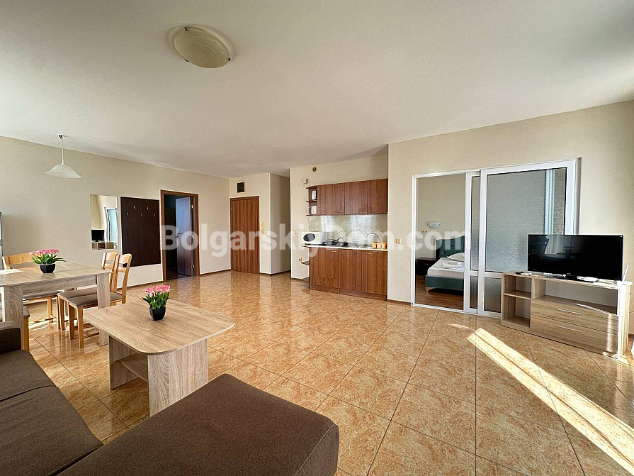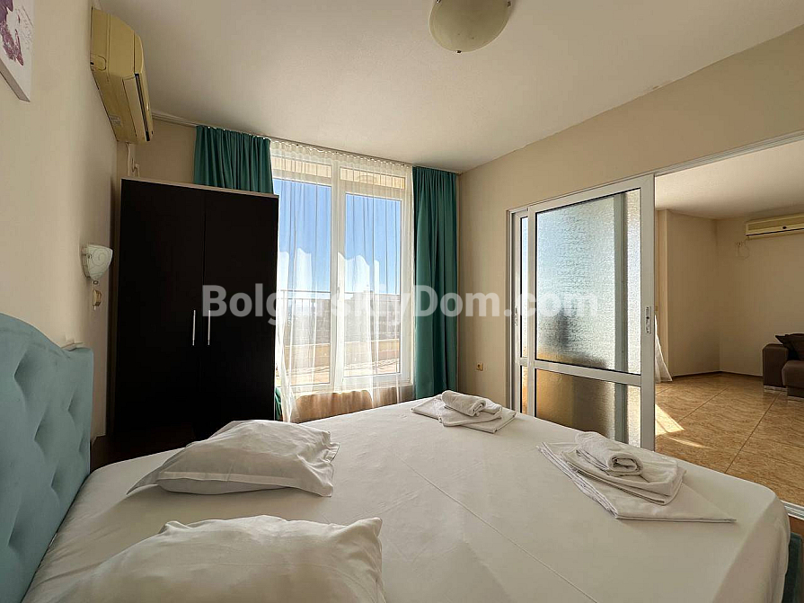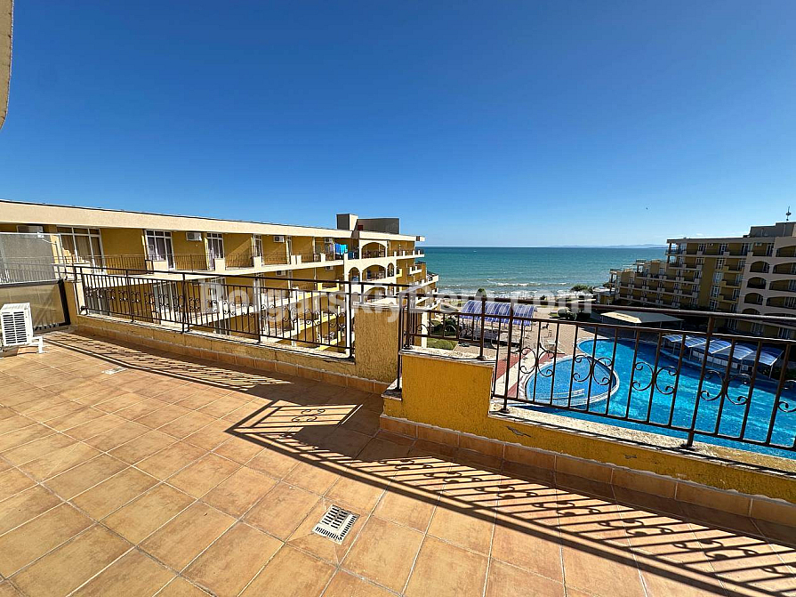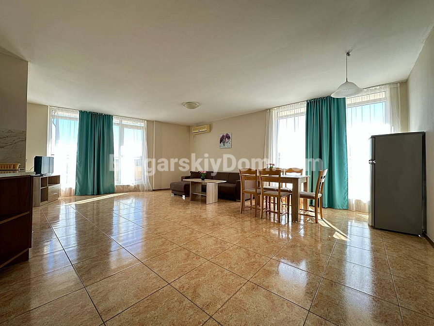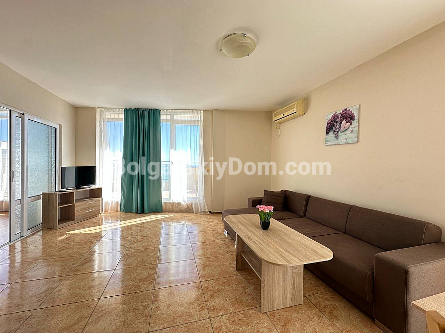 Die Firma Bolgarskiy Dom bietet eine außergewöhnliche Gelegenheit für alle, die eine wirklich großzügige Wohnung in erster Meereslinie zu einem unglaublich niedrigen Preis pro Quadratmeter suchen. Im Komplex Midia Grand Resort in Aheloy steht ein Apartment mit einer Gesamtfläche von 224 qm zum Verkauf. Es befindet sich im sechsten und obersten Stockwerk, von wo sich ein herrlicher Meerblick eröffnet. Die Wohnung ist vollständig möbliert, mit einer modernen Küche und Geräten ausgestattet, einschließlich Klimaanlage. Dank des durchgehenden Grundrisses und der sehr großzügigen Räume haben Sie einzigartige Freiheit, den Raum nach Ihrem eigenen Projekt zu gestalten. Das Apartment wird durch eine riesige Terrasse ergänzt – ideal zum Entspannen und Genießen der Aussicht.