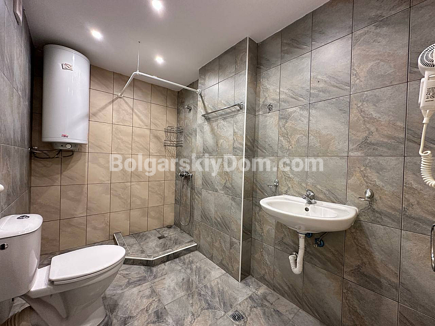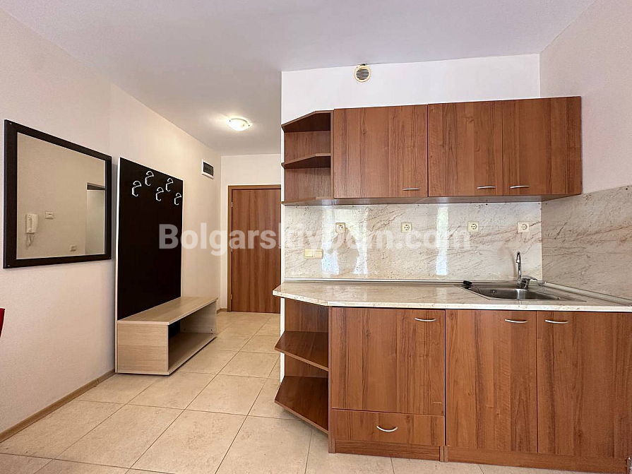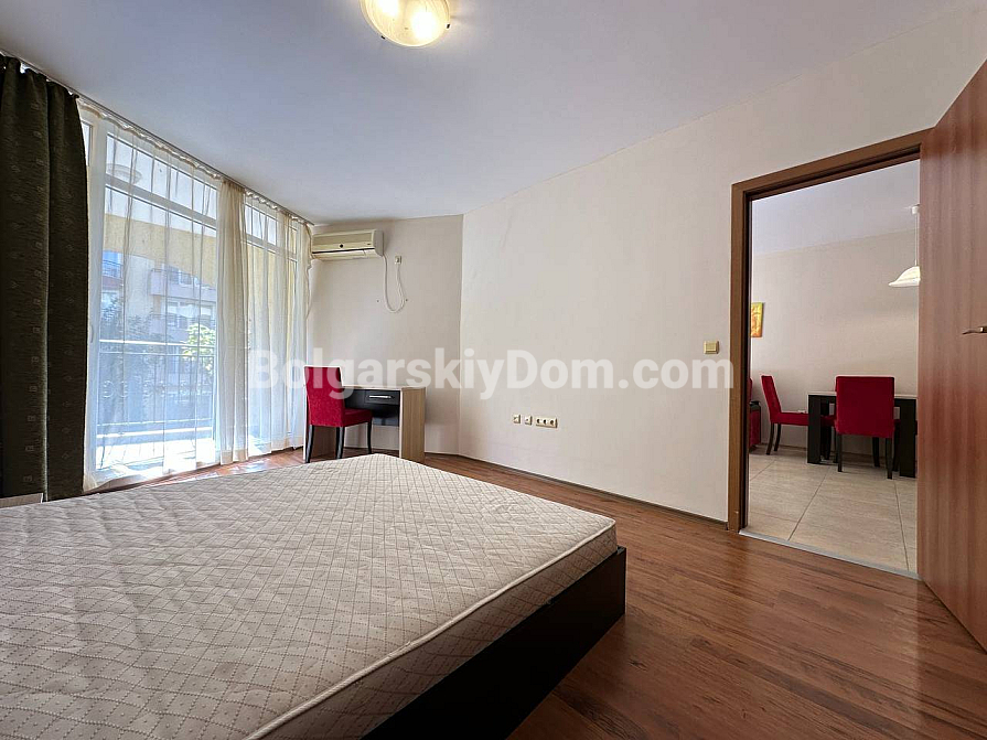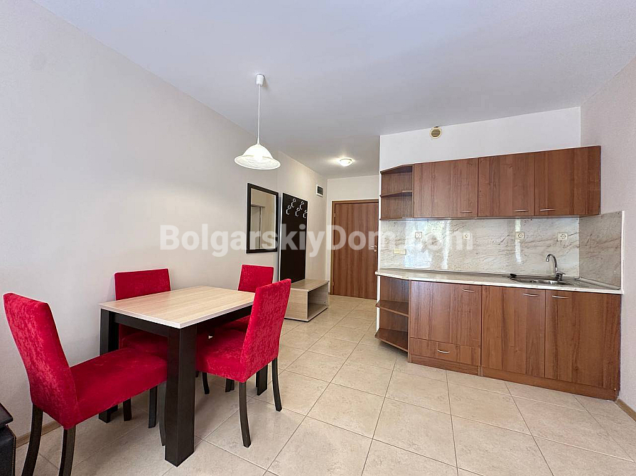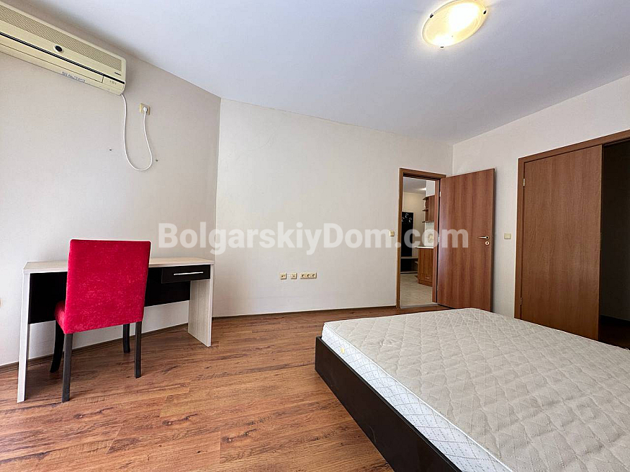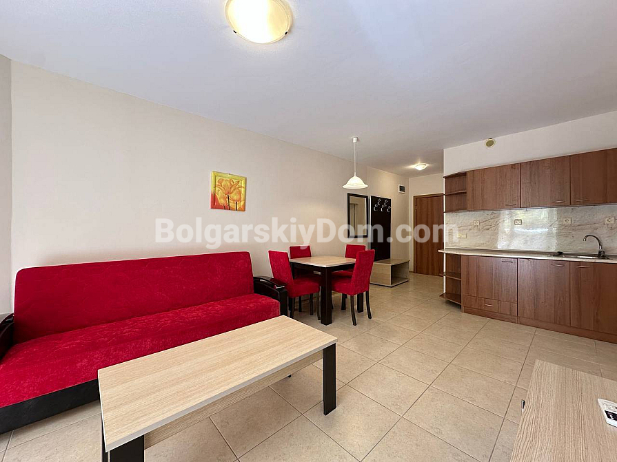 Das Team der Agentur Bolgarskiy Dom hat für Sie die perfekte Option mit einer seltenen Kombination von Vorteilen gefunden: Nähe zum Meer, ein einzugsfertiges Interieur und eine unglaublich niedrige Jahresgebühr! Wir präsentieren Ihnen ein gemütliches Apartment mit 59 qm im Komplex Aivazovsky Park in Pomorie. Die Wohnung befindet sich im dritten Stock, mit einem durchdachten Grundriss und moderner Ausstattung. Hier erwarten Sie ein geräumiges Wohnzimmer mit einem großen ausziehbaren Sofa sowie eine voll ausgestattete Küchenzeile: Herd, Dunstabzugshaube, Mikrowelle und viel Stauraum sind bereits vorhanden. Hochwertige Möbel und Haushaltsgeräte sind im Preis inbegriffen, und die großen Fenster füllen das Interieur in sanften Tönen mit natürlichem Licht. Die Wohnung ist komplett bezugsfertig!