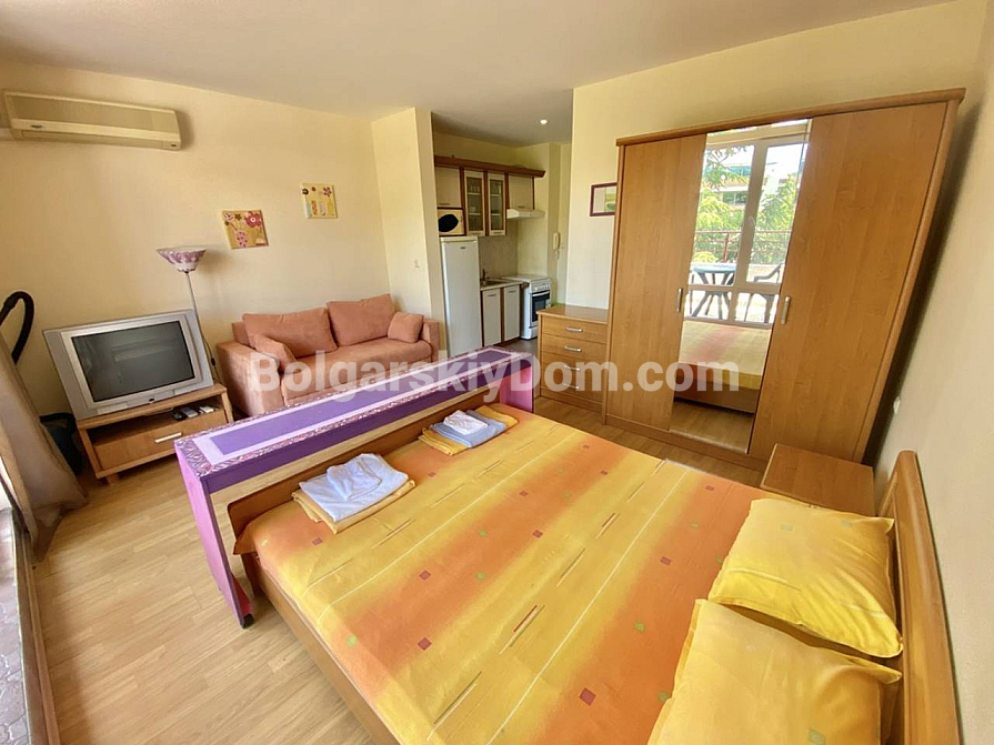 Bolgarskiy Dom hat für Sie das perfekte Objekt gefunden, bei dem Sie sich nicht zwischen Bergen und Meer entscheiden müssen. Es handelt sich um ein Studio im Komplex Privilege Fort Beach – direkt in erster Linie in Elenite, an einem romantischen Ort namens „Robinson“! Das Apartment mit einer Fläche von 36 qm befindet sich im vierten Stock und ist bereits vollständig bezugsfertig: Möbel, Geräte, Klimaanlage – keinerlei Investitionen sind erforderlich, um einzuziehen. Der Grundriss ist äußerst funktional: Eingangsbereich, Wohnzimmer mit Küchenzeile, kombiniertes Bad und vor allem eine große Terrasse mit beruhigendem Blick auf die grünen Hügel. Die östliche Ausrichtung schenkt Ihnen perfekte Sonnenaufgänge. Wir freuen uns auf Ihren Anruf!